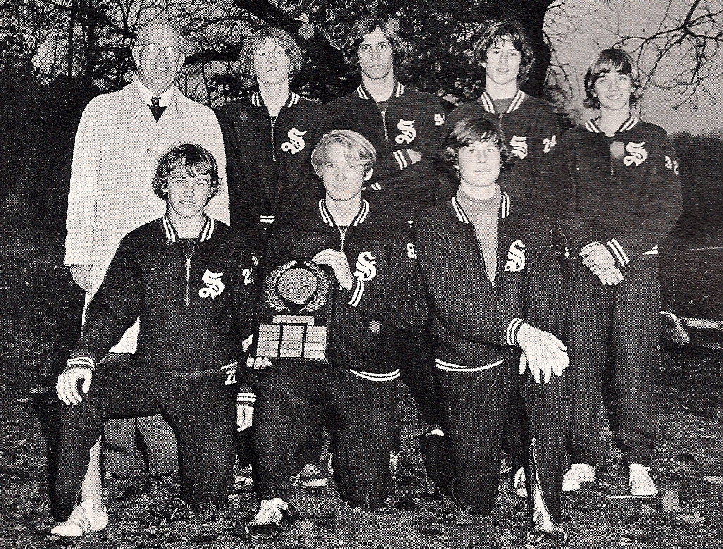Stony Brook’s move to Section XI to compete against public schools did not elicit a change in the team’s success. The 1973 squad showed this time and again, going 8-1 against their unfamiliar opponents on their way to the League VII Title, their 18th league title in nineteen years. The 1974 squad bested the efforts of the ’73 harriers by going 8-0 and winning the League VII Title. In 1975, the boys went 8-1, captured a third straight League VII Title, the 20th league title in twenty-one years, and won the team’s first County Championship, where Mark Whitney, Mark Soderstrom, and Brad Bright snatched the first three places.