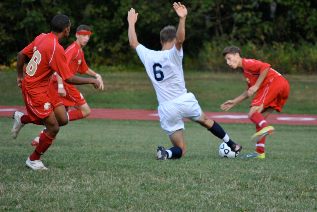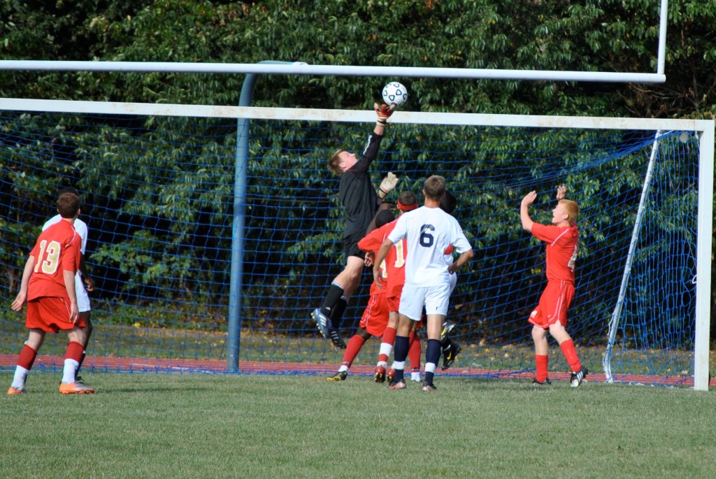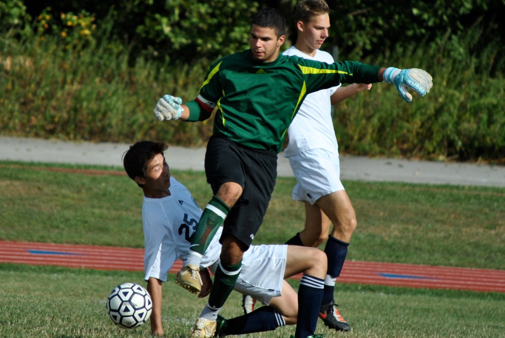 The Bears and Colts split the time of possession, but it was clear that Hills West had many more quality chances. Our offense did not truly threaten once, while on the other side goalie Wes Woodley and our defense were constantly challenged by the attacking men in red. Woodley came up with several sparkling saves, making a diving stop on one and turning away a point blank shot on another. Hills had a few golden chances in the late minutes of the first half, but Woodley prevented one shot while on the ground while the second glanced unnervingly off the post.