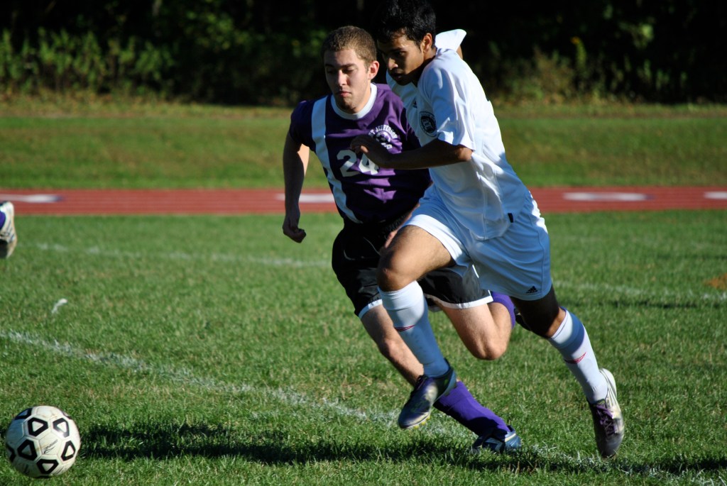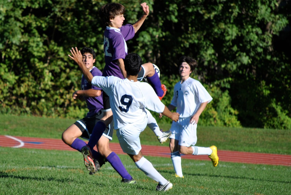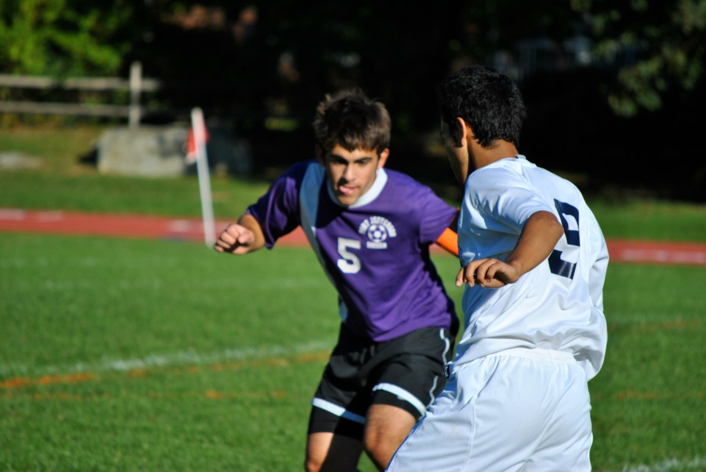 From the beginning, it was obvious this was going to be a far different affair than the first installment. The play was spirited and the boys, perhaps buoyed by the Homecoming crowd, seemed impassioned. Four minutes into the game, Anuraag Sah ripped a shot that caused the Port Jeff goalie to make a diving stab to his left. The play for most of the half was very even. The Blue and White offense had a number of chances while the Royals had their close encounters as well, lofting balls to the quick forwards, causing Wes Woodley to come out and make several sliding stops.
