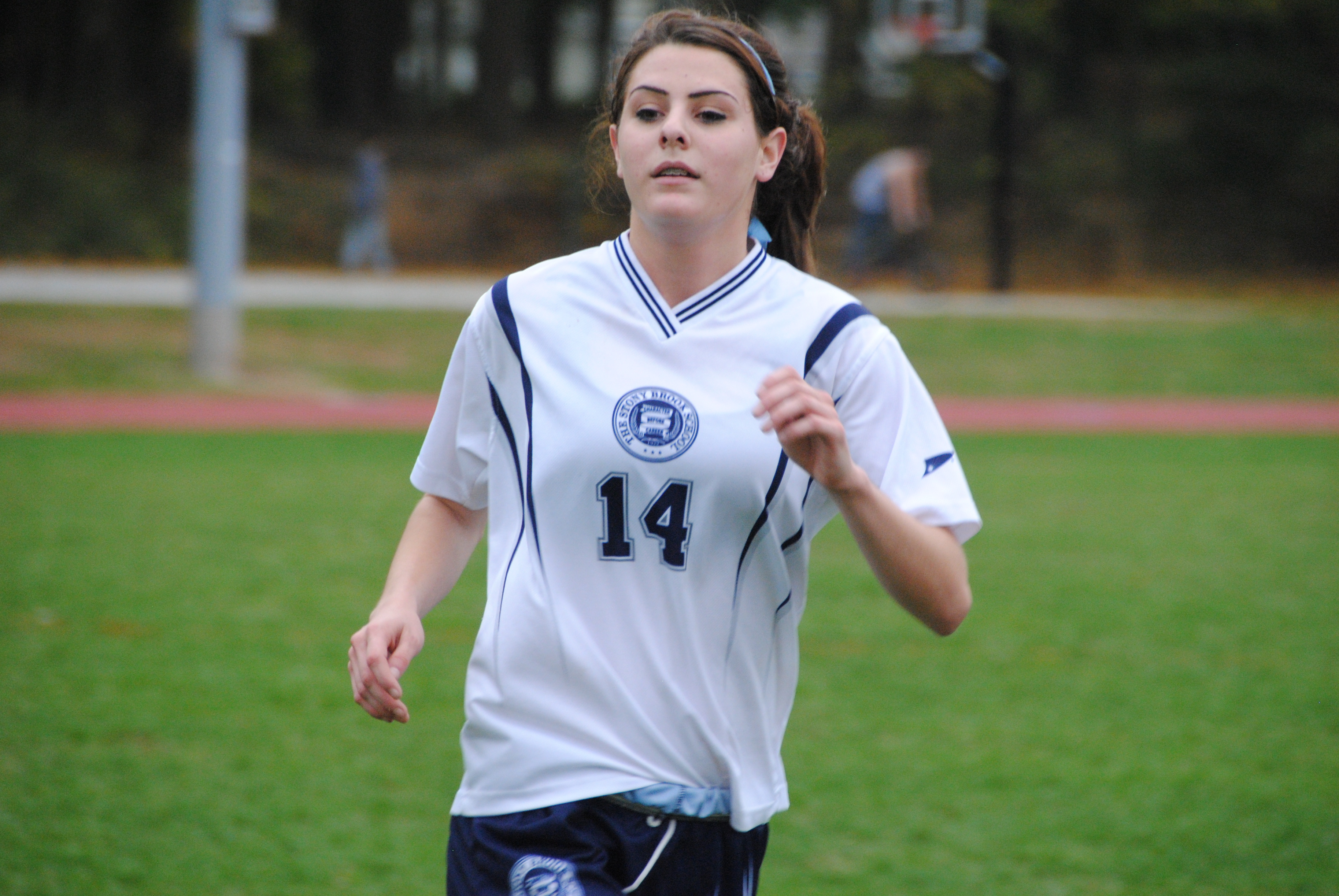 Michele Hennessy scored two goals in the first and two in the second, bringing her total this season to 21, to lead Stony Brook. Goalkeeper Danielle Pappas made three saves for her sixth shutout of the season.~ Newsday