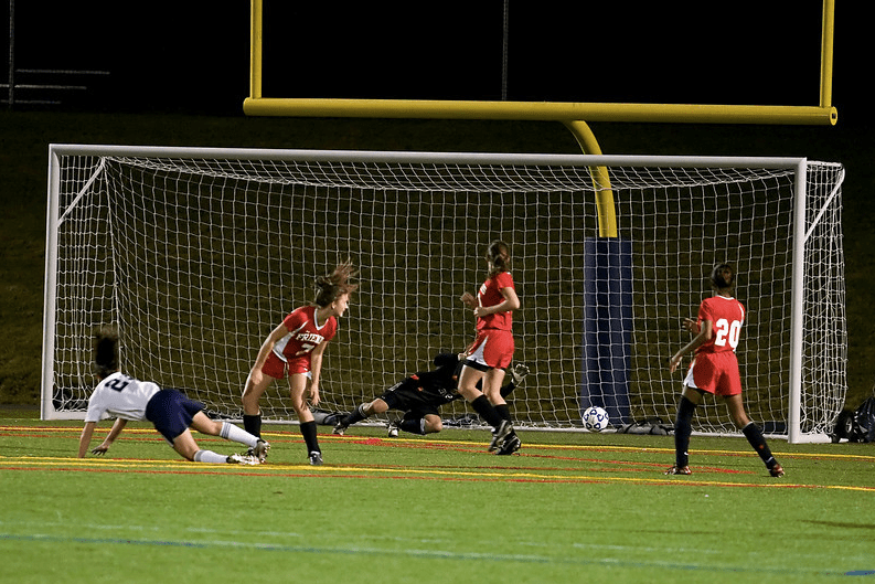 The Bears’ All-State captain stepped up to a corner kick with 3:54 remaining in the game and drilled a low ball that ricocheted off of a defender hugging the post and into the back of the net. The Brookers in the stands erupted and the girls celebrated, knowing they were minutes away from the title. The last few minutes ticked off uneventfully and the girls reveled in another historic win. Pappas shone in goal, keeping the Bears in the game with 12 saves. Scavo remembered her deft strike:
