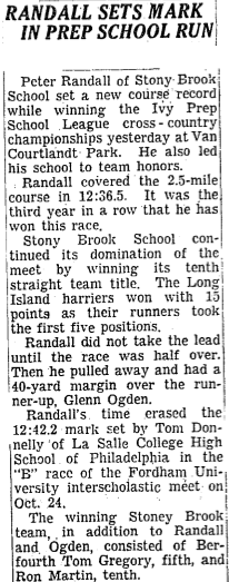 | 1 | Peter Randall | Stony Brook | 12:36 |