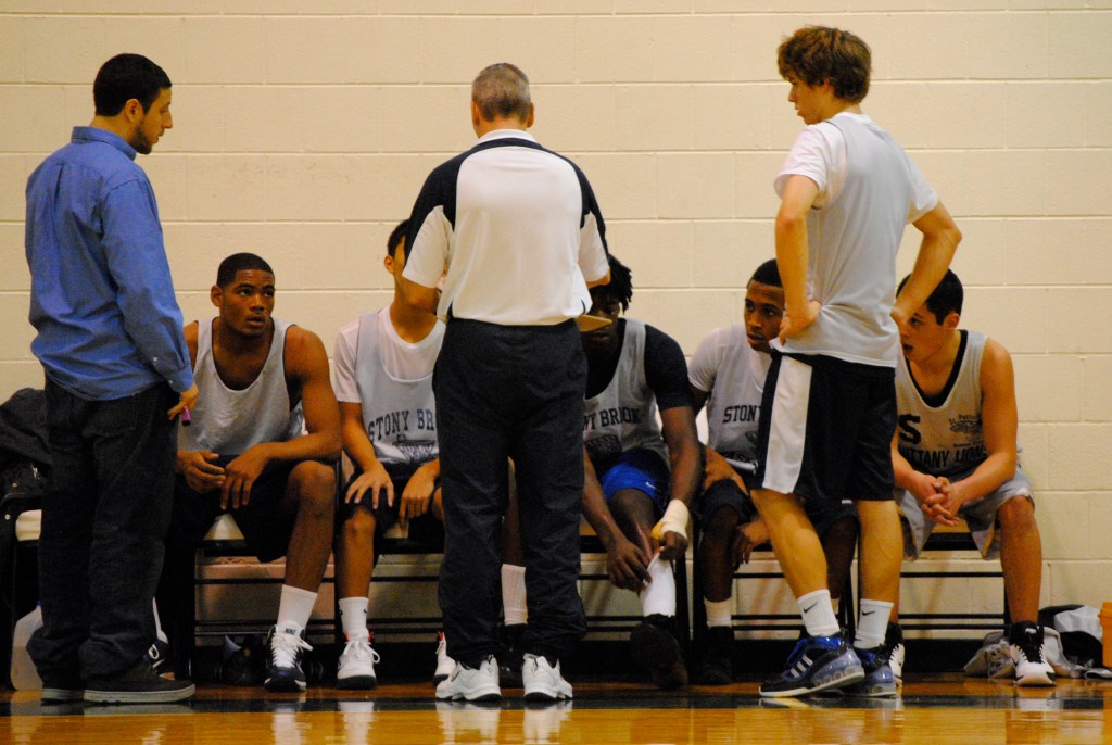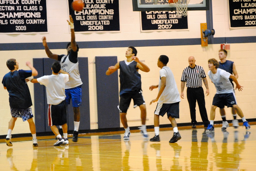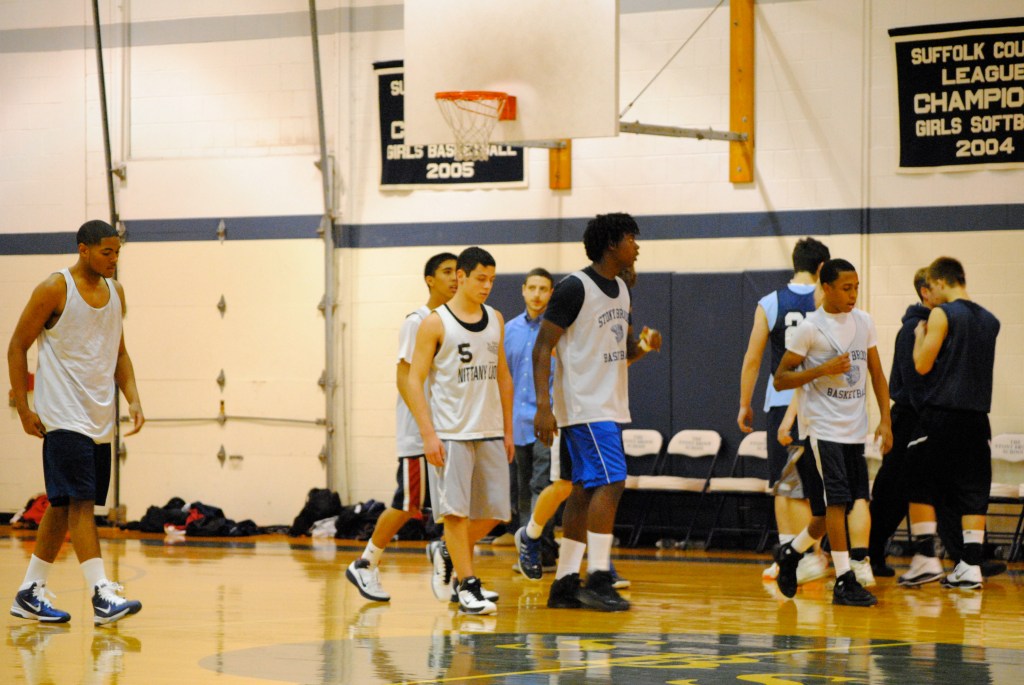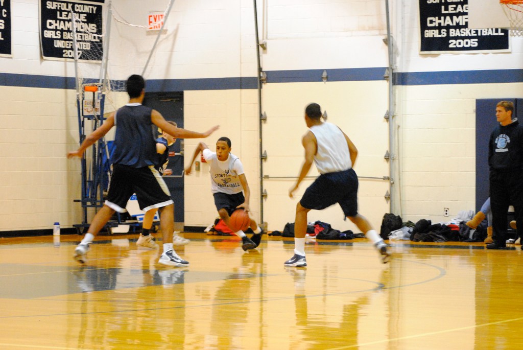 Basketball season is back at Stony Brook and yesterday morning the boys began their quest to defend the Long Island Championship in a scrimmage against League V foe, Rocky Point. With a skeleton crew of six players, including two from the junior varsity squad, the Bears outplayed the Eagles and won handily, capturing five of the seven 10-minute running quarters.