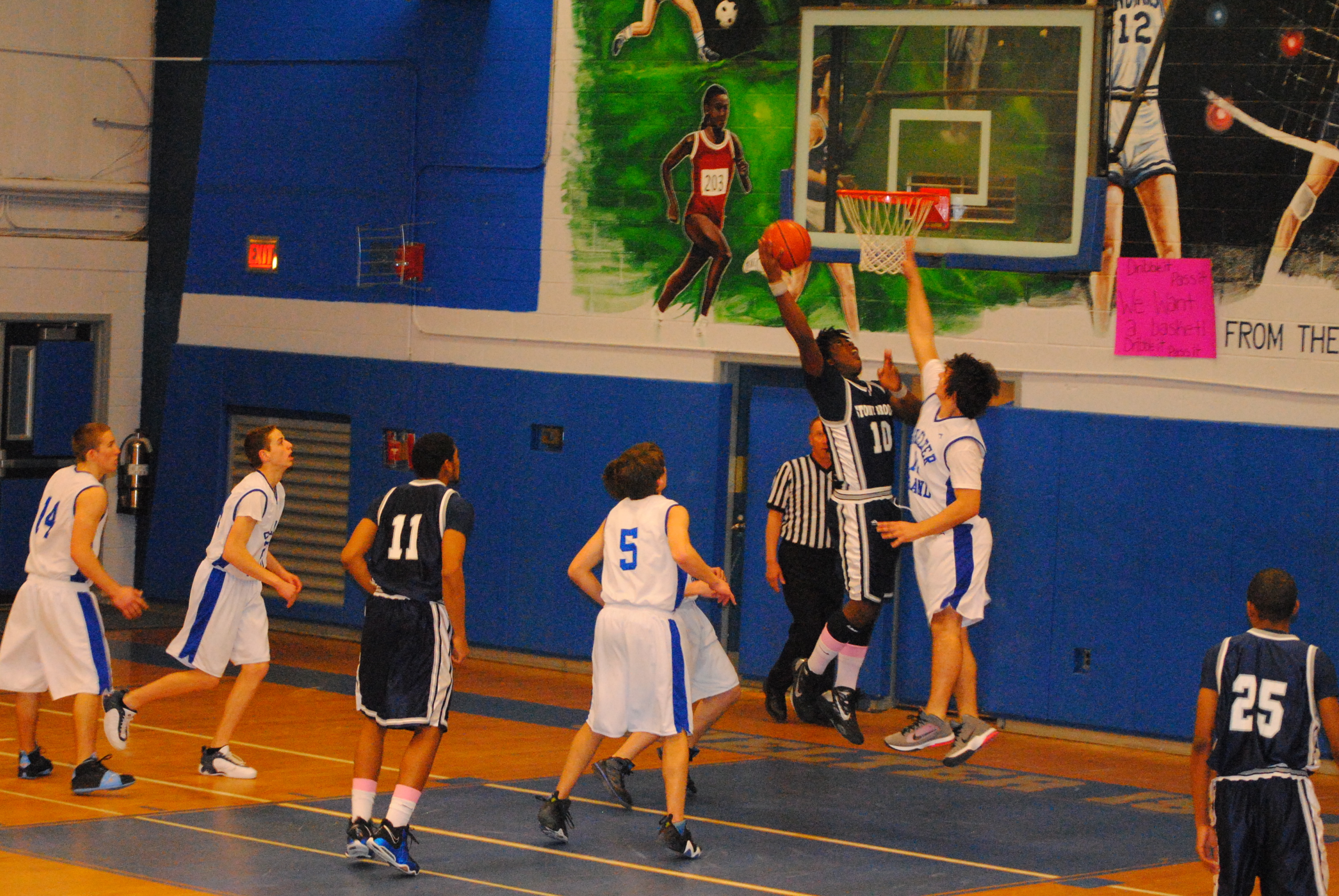 The Bears were impressive before the game even started as Pandolfi and Jerome Washington threw down emphatic dunks during layup lines. Unfortunately, the display earned not only “oos” and “ahs,” but a technical foul from the referees as dunking in layup lines is against the rules. Shelter Island connected on both free throws and after a score inside they jumped out to a quick 4-0 lead. Unfortunately for the spirited islanders in the stands, it would be a short-lived advantage. The Brook responded with a 7-0 spurt on layups from Richie Armand and Jerome Washington and a 3-pointer from Armand. From then on it was the Bears’ defense that provided the scoring punch. Five steals in the quarter, courtesy of the press, led to a number of layups for our speedy guards. Pandolfi scored 8 in the quarter on three layups and a jumper to lead the attack. | 20-10