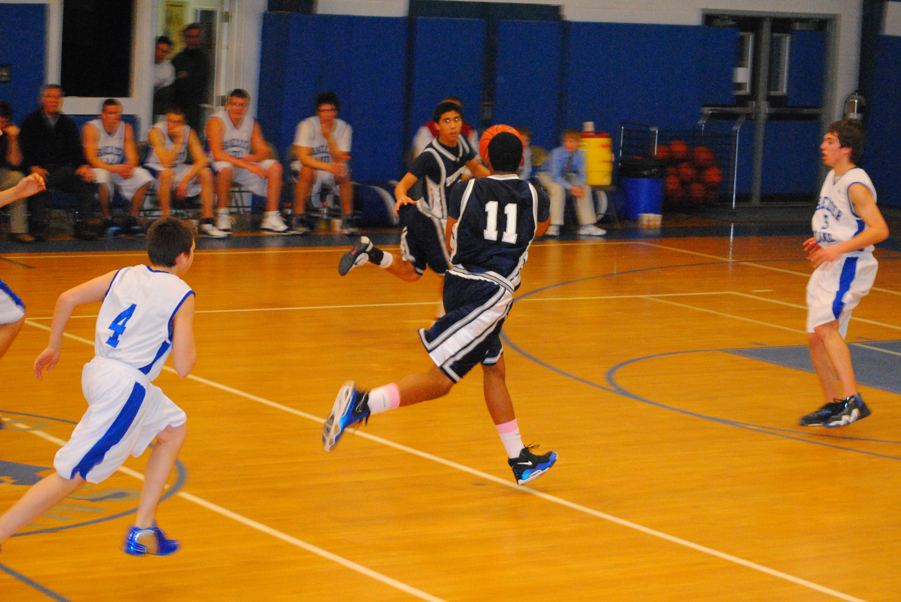 Any hopes of a comeback for the Indians were quickly quashed by a 19-3 run from the Bears. Pandolfi began the quarter with a difficult reverse layup and a trifecta. Kai Strachan followed with a pair of free throws, Forrest Hull scored back-to-back layups, Marco Masakayan drilled a baseline jumper, and Farqu Taylor converted on a drive to bury the home team beneath an avalanche of points. Everything seemed to be falling for the Brook in the second frame, even an impossible shot from Strachan while he was falling to the ground, that did not count, but was nonetheless noteworthy. When the smoke had cleared the boys held an insurmountable 44-17 edge heading into the break. | 44-17