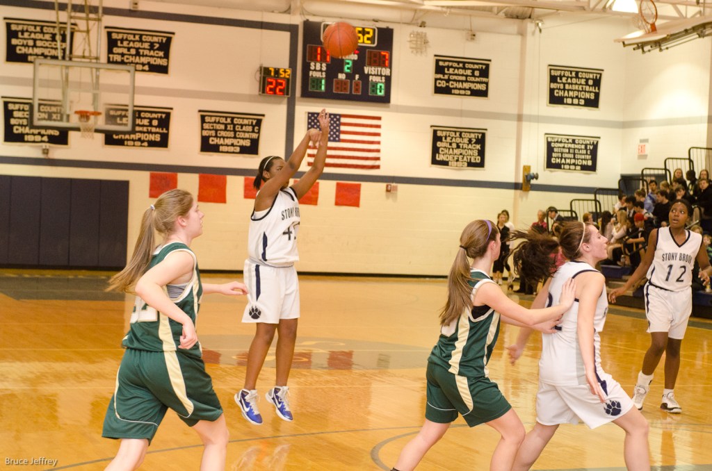Prior to the game Burke was honored for scoring her 1,000th career point in Monday’s win over Southold and she treated the fans to another solid performance as the #10 scorer on Long Island scored 15 points while pulling down 14 rebounds. The Bears jumped all over the Monarchs, outscoring them 11-7 in the first quarter and 17-10 in the second to take a commanding 11-point lead at the break. Mercy battled back with a 7-4 third quarter, but Burke was too much down the stretch as the Bears cruised to another win. Burke led all scorers, Ariana Odom added a season-high 13 points that included three 3-pointers, Winston scored 8, Danielle Pappas contributed 6, and Keara Vancol chipped in 2.