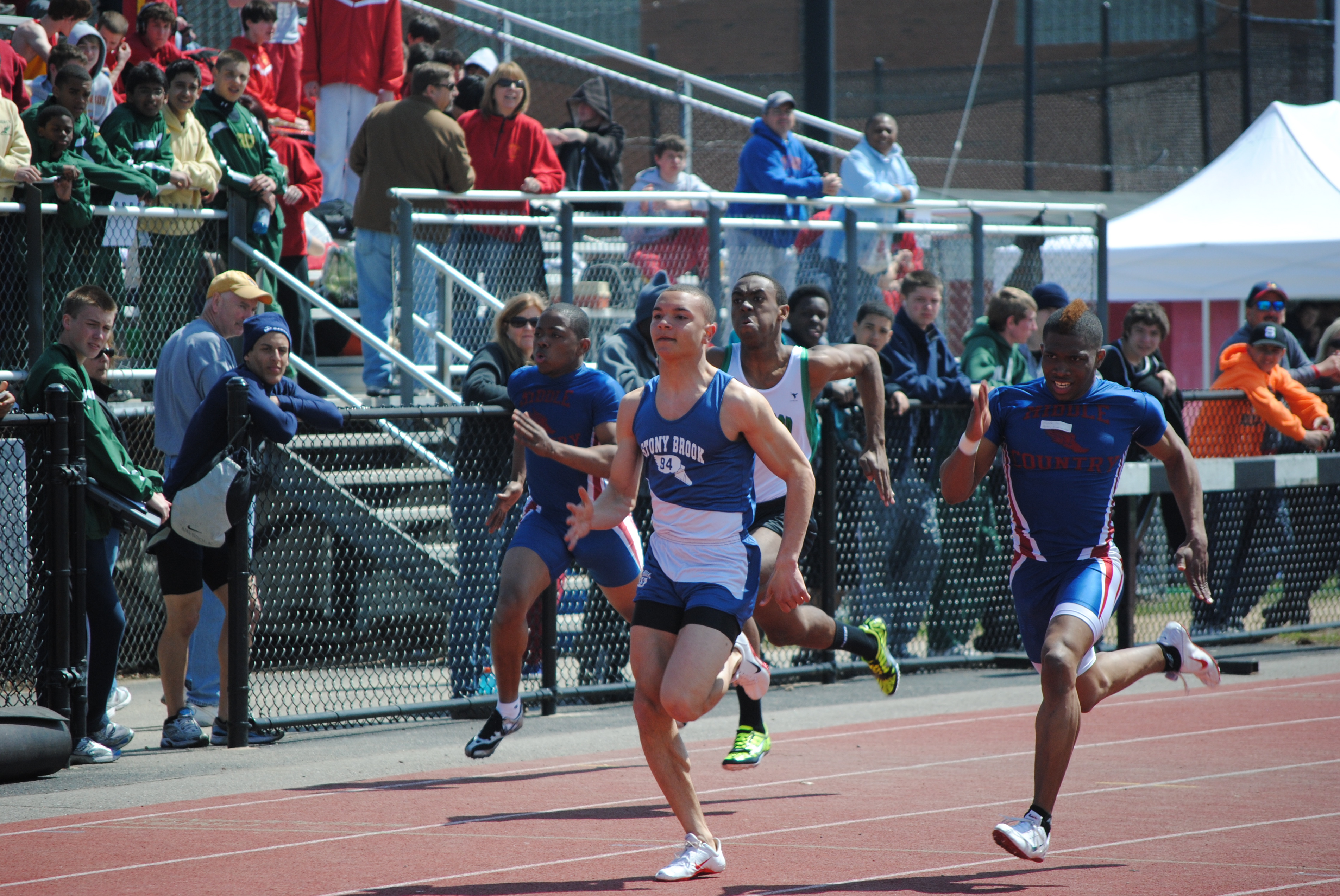 Colucci received the baton in 4th place, but passed William Floyd’s anchor on the backstretch and continued to close on the leaders, running his 400 meters in 50.8. Coach Morley was very pleased with his team’s effort, not only because they hit the qualifying mark, but because Colucci, who had already run three races, ran a very strong 400, and the fact that they competed without Andrew White, replaced by Masakayan, whose best open 100 mark is 11.6.