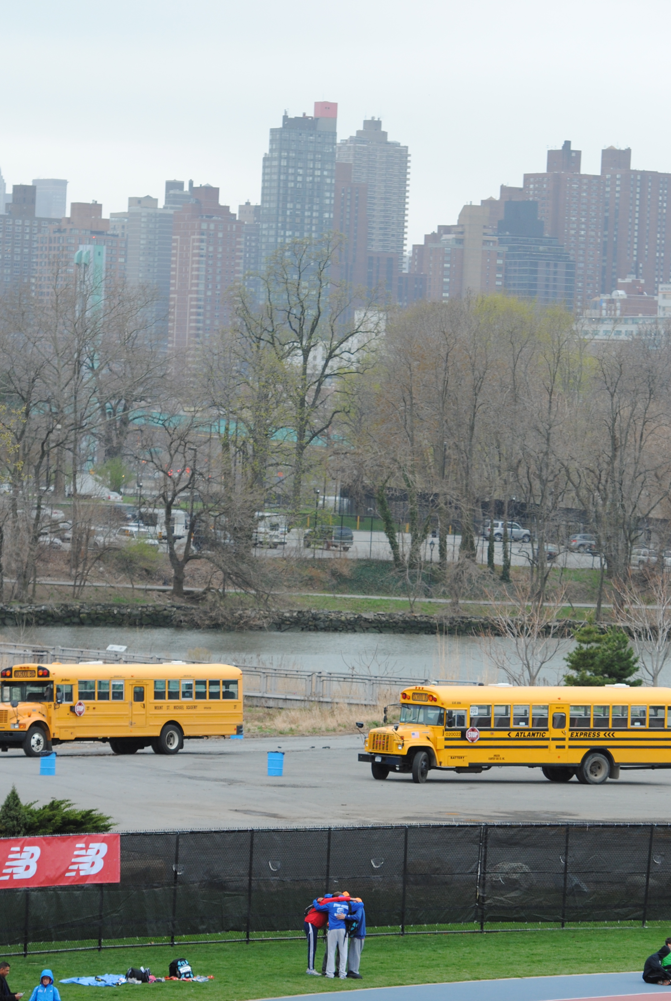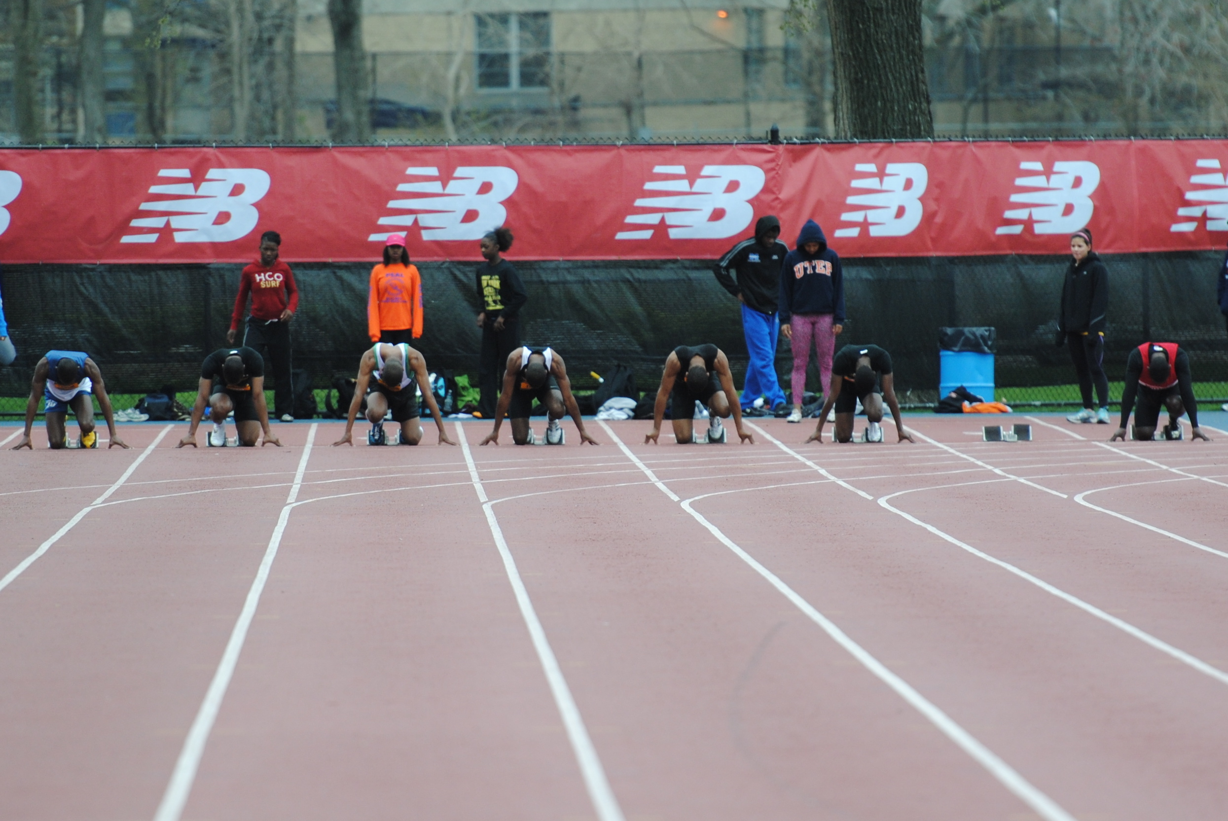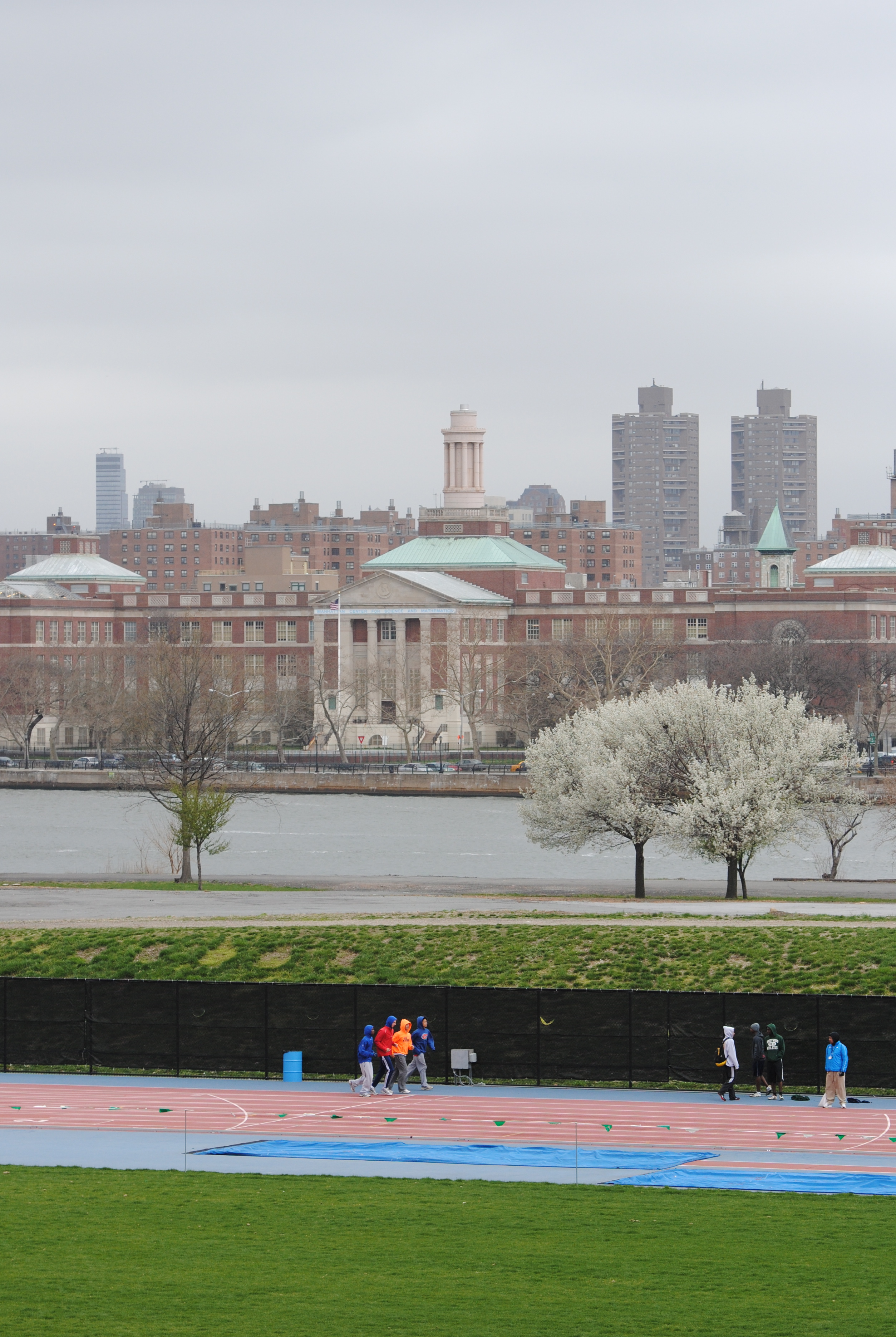 As the four fastest boys on campus stepped onto the track, a number of obstacles loomed. First of all, when the team arrived the meet was ahead of schedule by 45 minutes, leaving the boys barely any time to warm up as they frantically put on their spikes and pinned numbers onto their jerseys. This also meant that the team had to clerk in late and was placed in the last heat, a very difficult spot from which to move onto the finals because of the likely disparity in competition. A third deterrent was the overcast sky that blanketed Icahn Stadium like a pall and the chilly winds that blew across the East River, conditions not conducive to fast times.