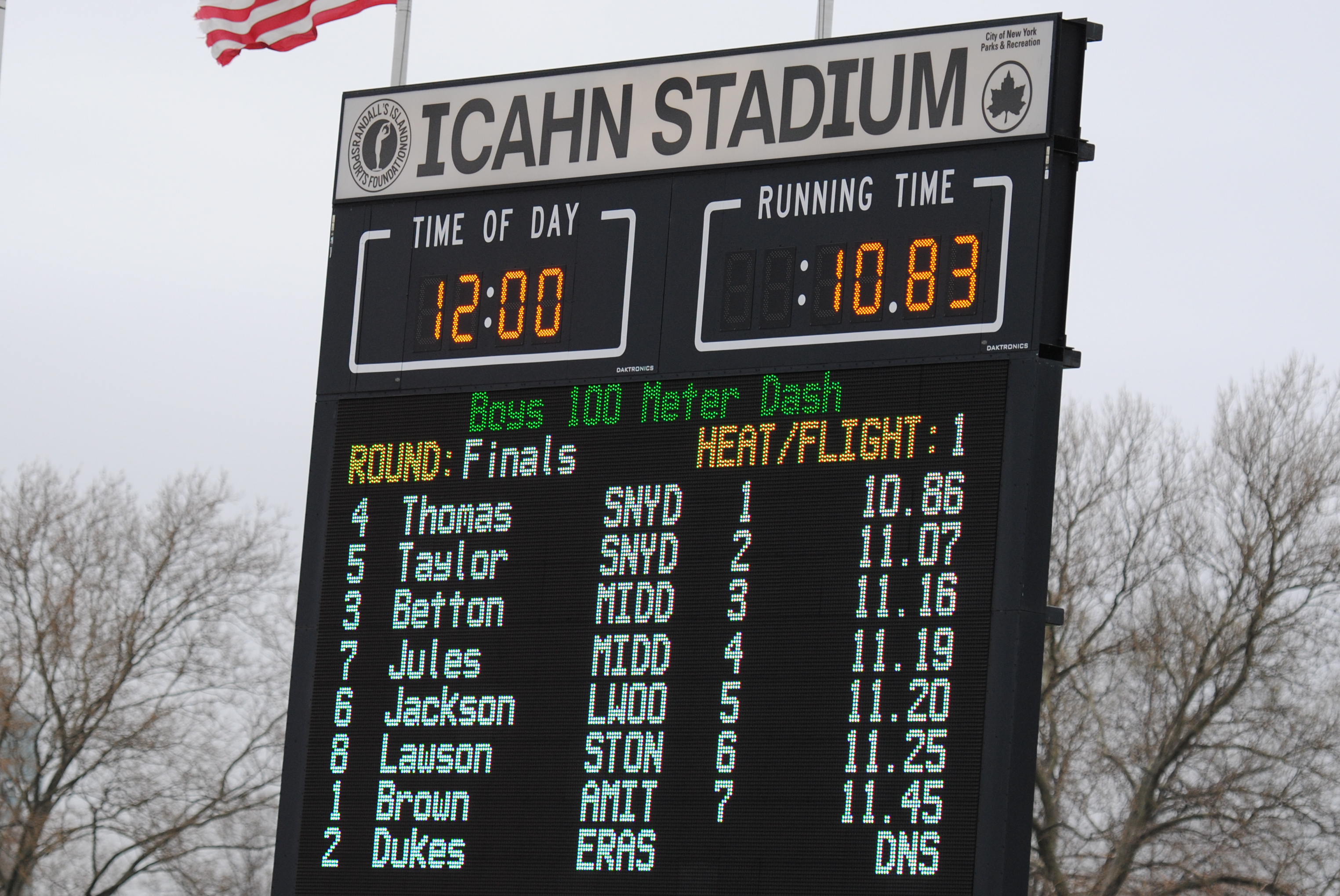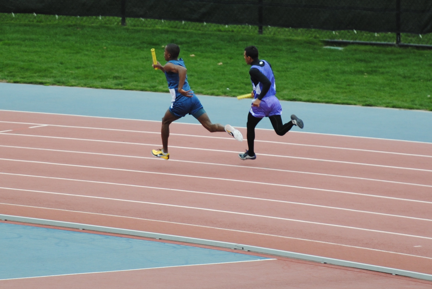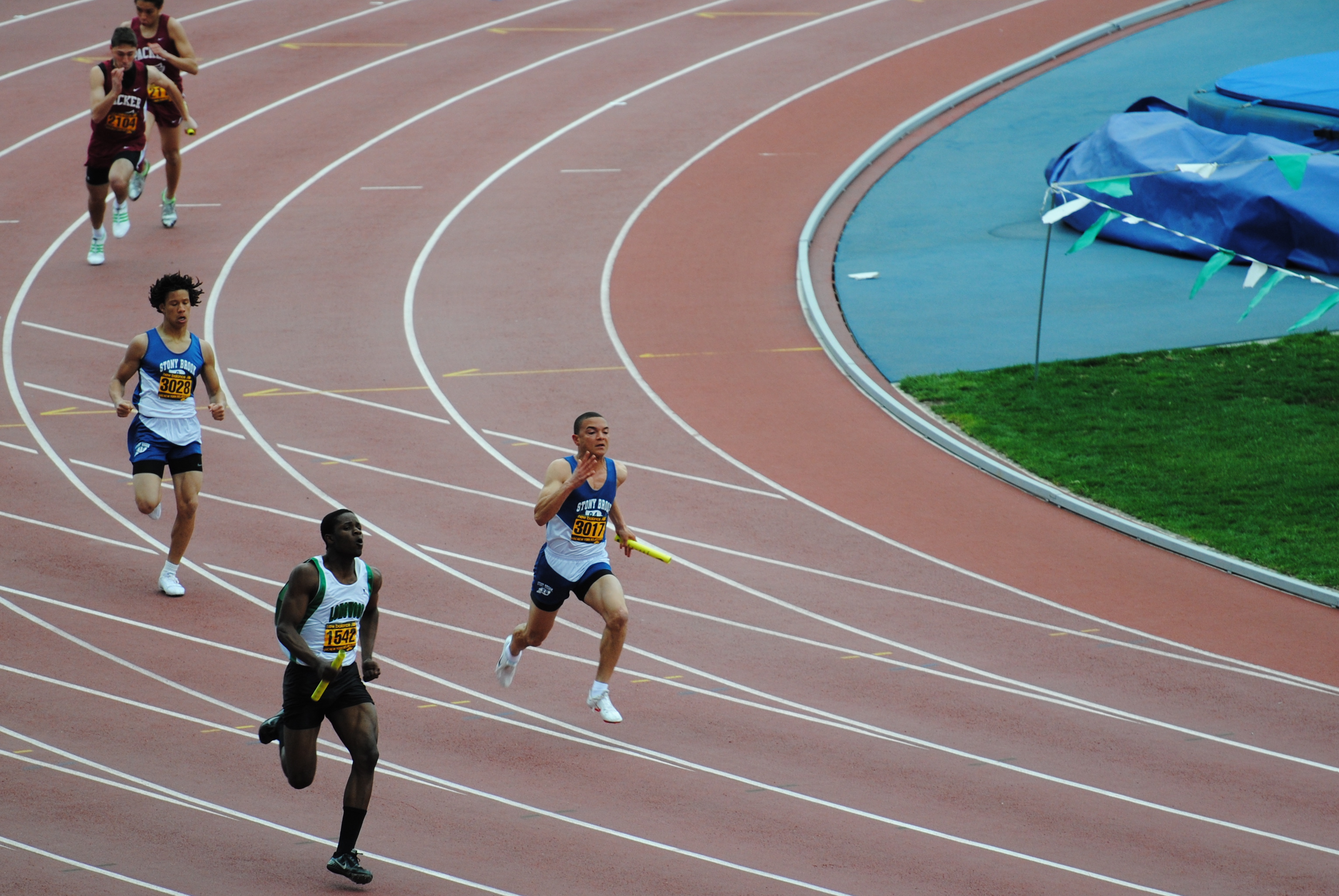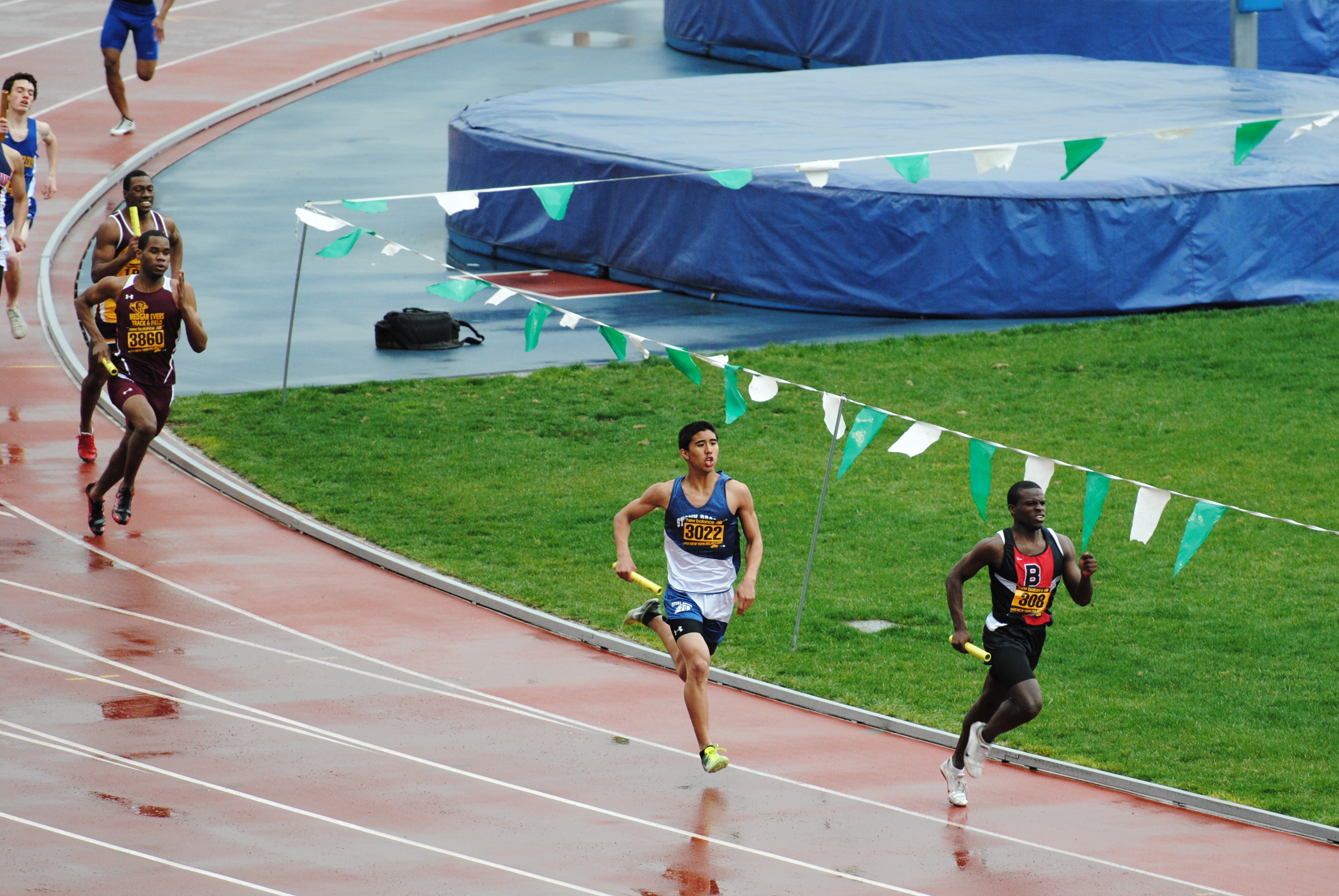 As the four fastest boys on campus stepped onto the track, a number of obstacles loomed. First of all, when the team arrived the meet was ahead of schedule by 45 minutes, leaving the boys barely any time to warm up as they frantically put on their spikes and pinned numbers onto their jerseys. This also meant that the team had to clerk in late and was placed in the last heat, a very difficult spot from which to move onto the finals because of the likely disparity in competition. A third deterrent was the overcast sky that blanketed Icahn Stadium like a pall and the chilly winds that blew across the East River, conditions not conducive to fast times.