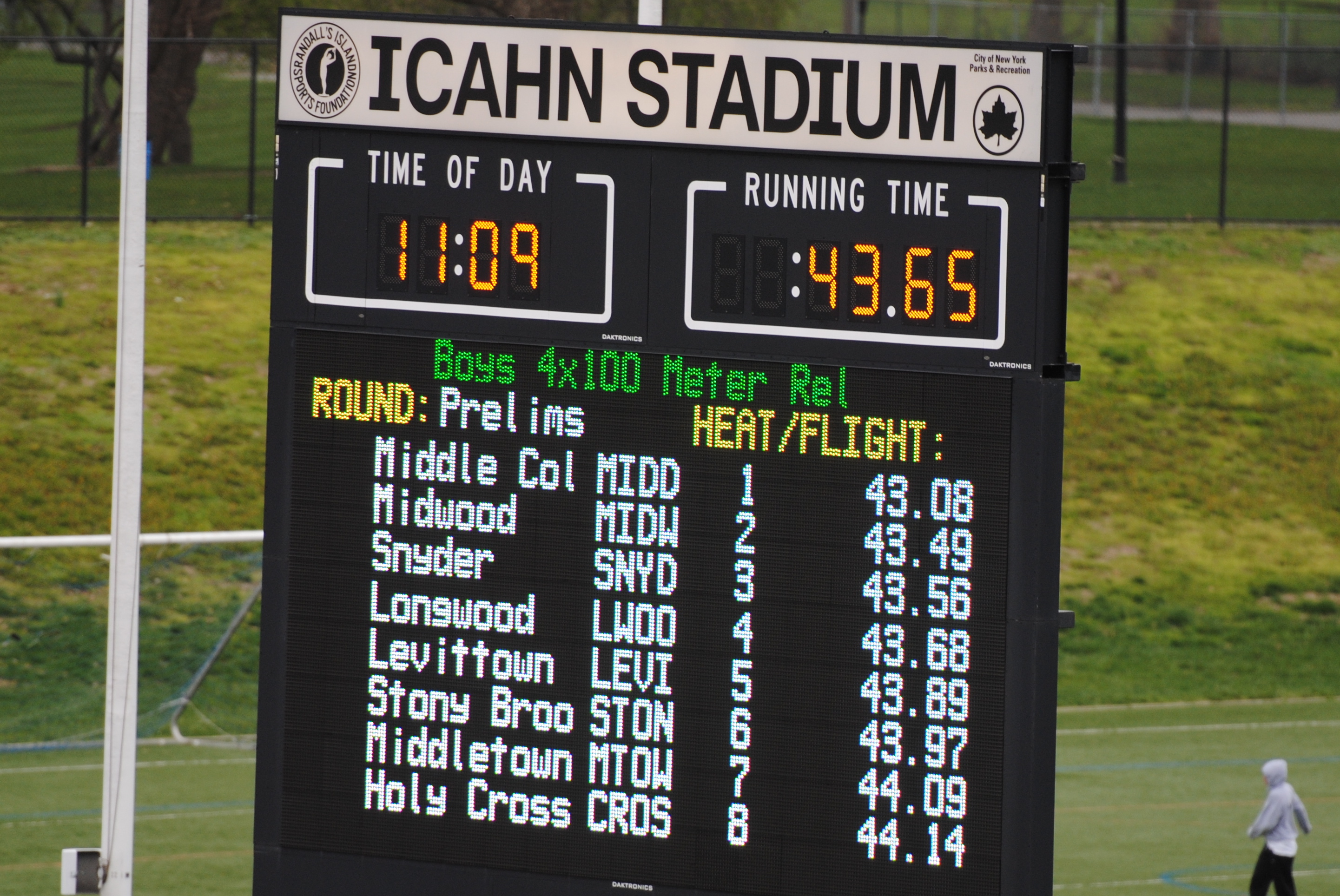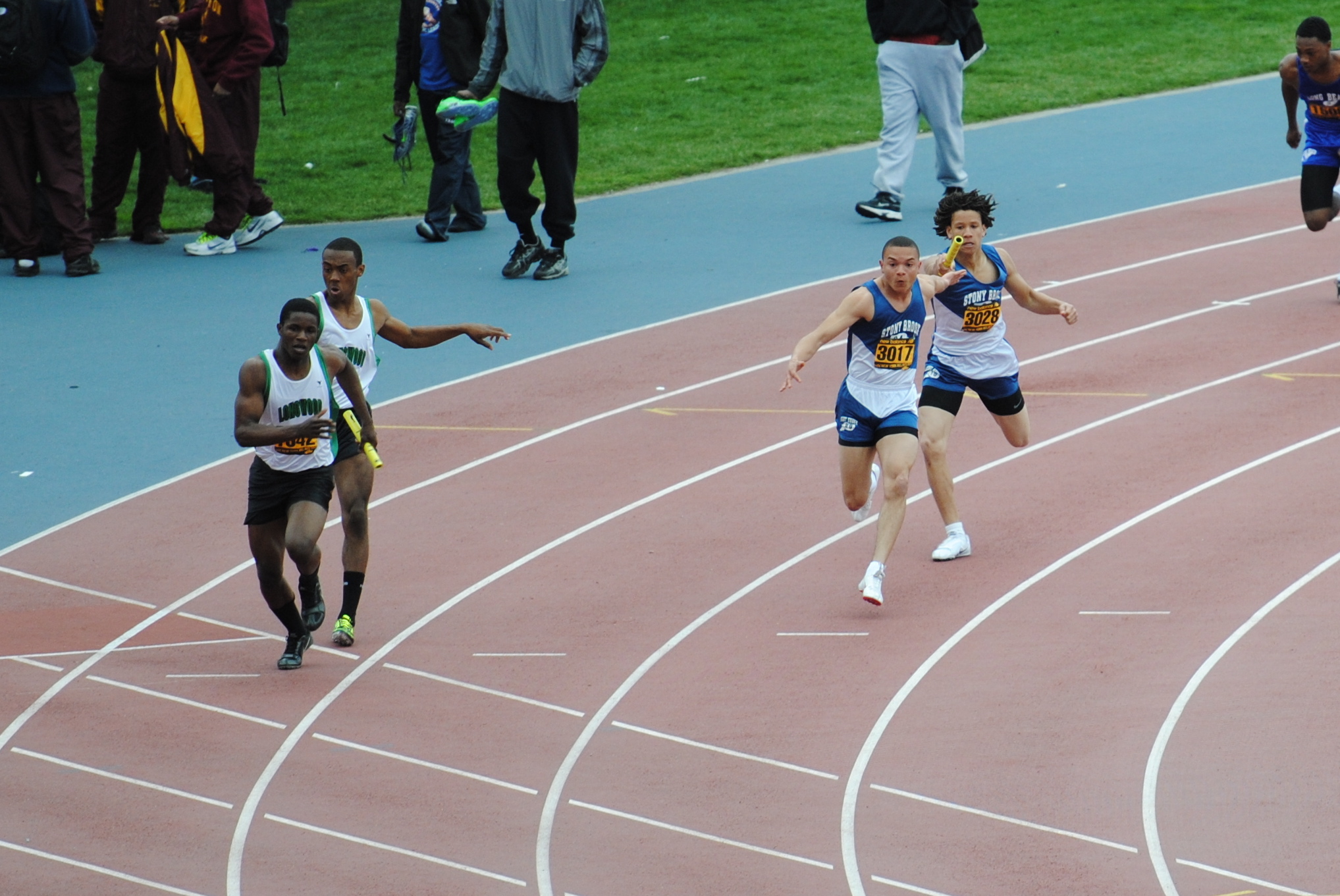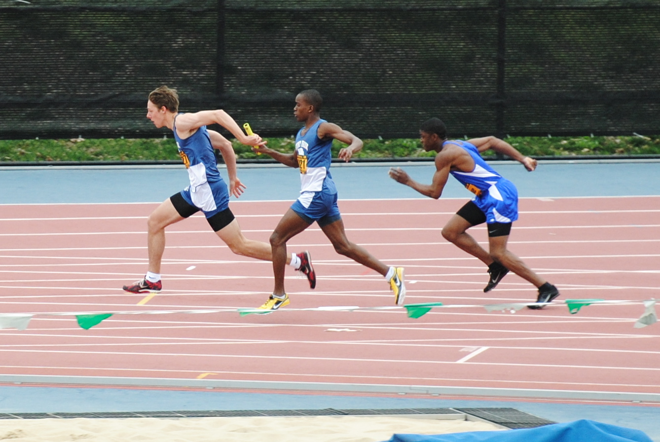 After a strong day of competition on Friday that saw a number of personal records eclipsed, five boys returned for day two of the 8th Annual New York Relays yesterday morning. The weather was not ideal for running as temperatures hovered in the 40s and rain lurked on the horizon, but the boys raced to some impressive times nonetheless, beginning with the 4×100 meter relay.