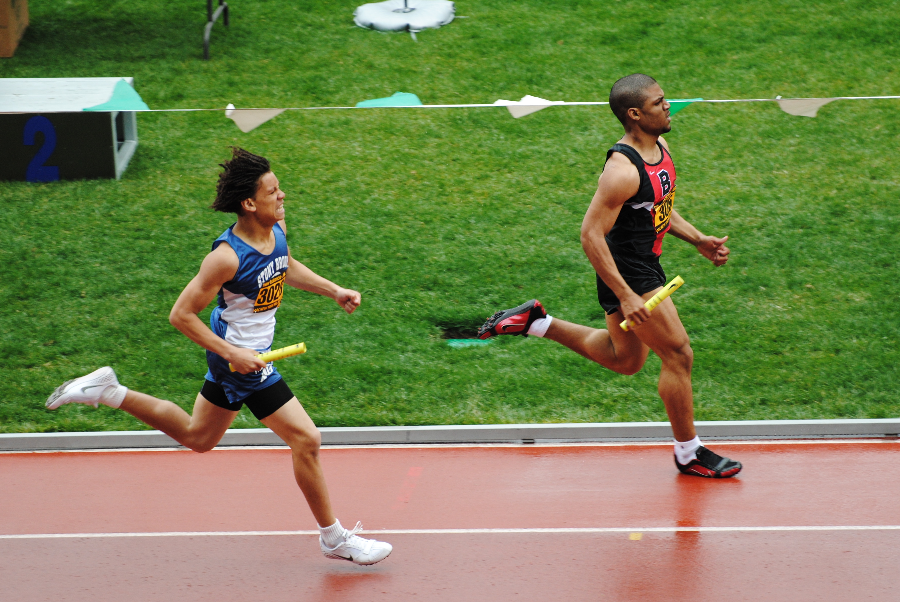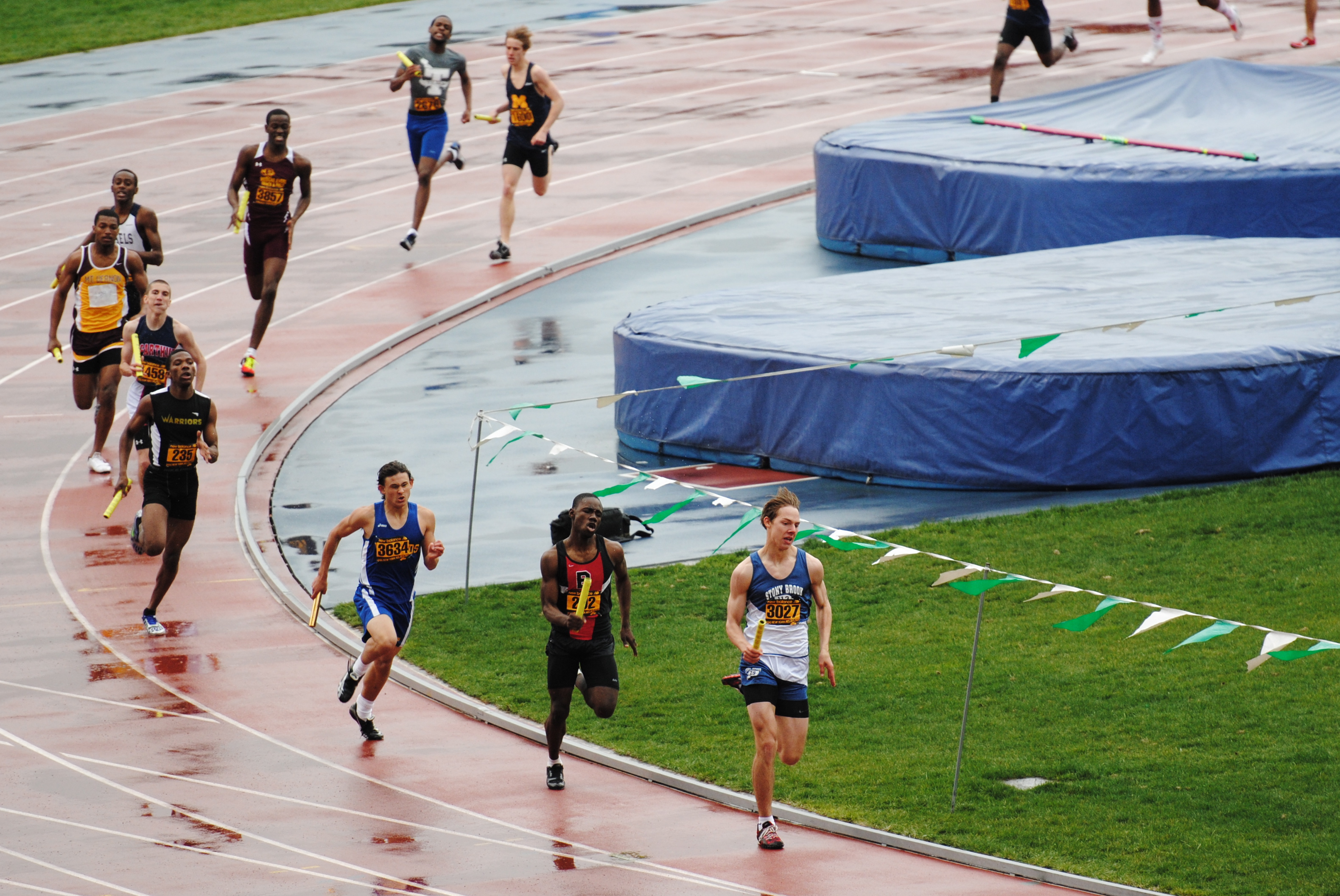 Lawson led off with a blazing 10.8 opening leg, then gave way to Jon Wentling whose 11.2 kept us in the thick of the pack. Andrew White’s third leg 11.7 was enough to keep us close before Taylor Colucci got the baton and turned on the afterburners for a 10.2 that helped us to the sixth fastest preliminary time and a spot in the finals. The team’s 43.97 made them the second fastest 4×100 team in school history, but even more impressive is the fact that the school record-holding 2007 squad of Terrance Anderson, Jon Bute, Pete Carmel, and Mike Cox did not break 44 seconds until the State Qualifying Meet in late May.