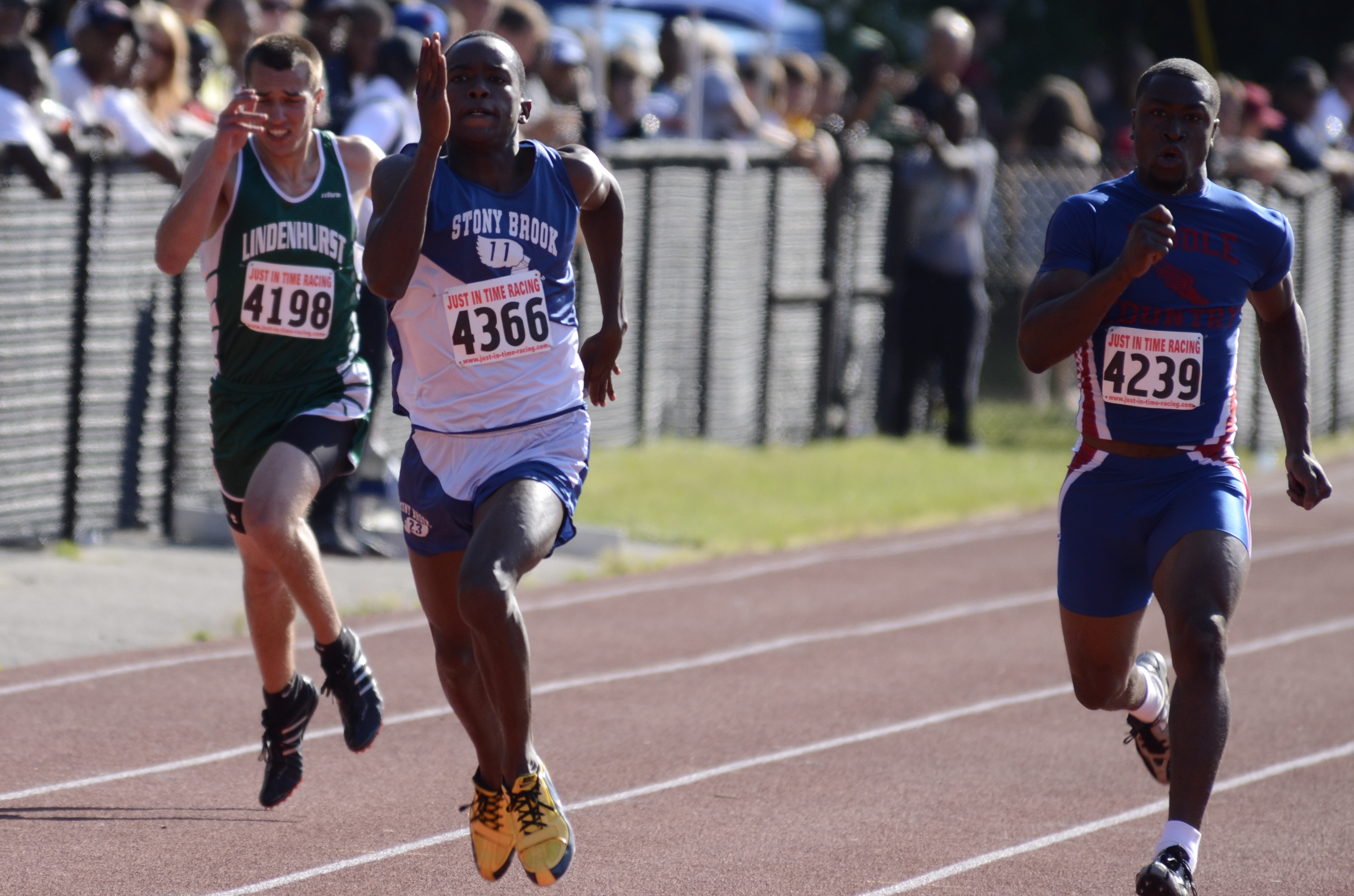 It had already been a memorable day and a Class B County Championship in the 4×100 meter relay seemed like a perfect way to bring it to a close. The boys had not run together in a month, the warm afternoon sun had given way to a cool evening breeze from Port Jefferson Harbor, and the order of the four runners had been altered–a seemingly inconsequential change that can greatly affect the of the handoffs. There was no reason to believe the boys would run an exceptional time, because they did not have to; they could cruise through the race and still beat intra-class foes Wyandanch and Center Moriches by a full second. However, when “Stony Brook” is emblazoned across your chest, a little more is demanded of you.