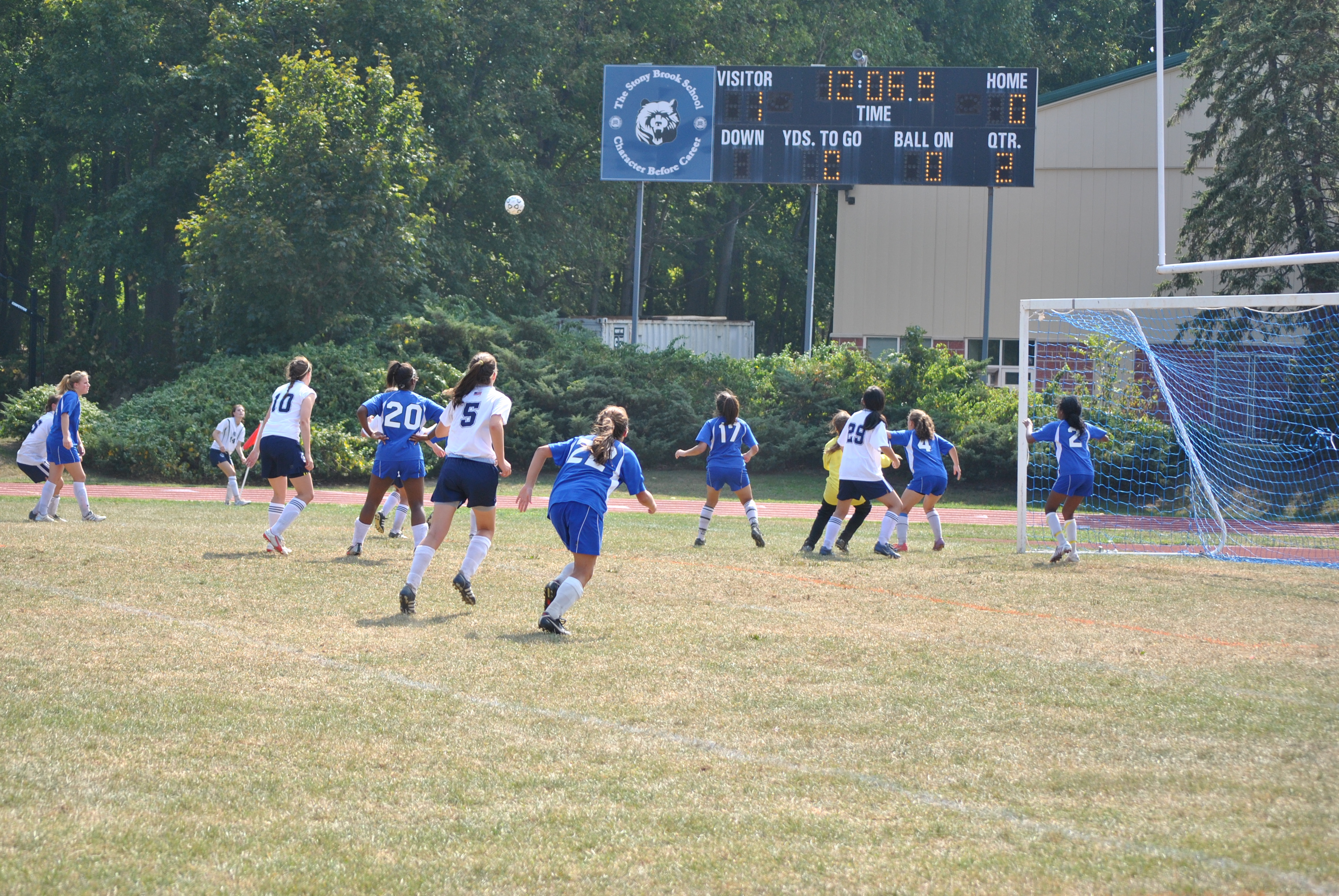 The girls’ soccer team had already dismissed the Royals twice this year by scores of 2-0 and 5-2, but they knew this game would be different. A senior-laden Port Jeff squad gave notice early in the contest that they would not capitulate to the three-time reigning County Champions. As a scoreless game entered overtime a palpable tension settled over the crowd and both sidelines. The Bears had a number of near scores including a rocket by Donna Liotine that ricocheted off the crossbar with 6:16 in the second overtime. Finally, the Bears seized control of the Championship.