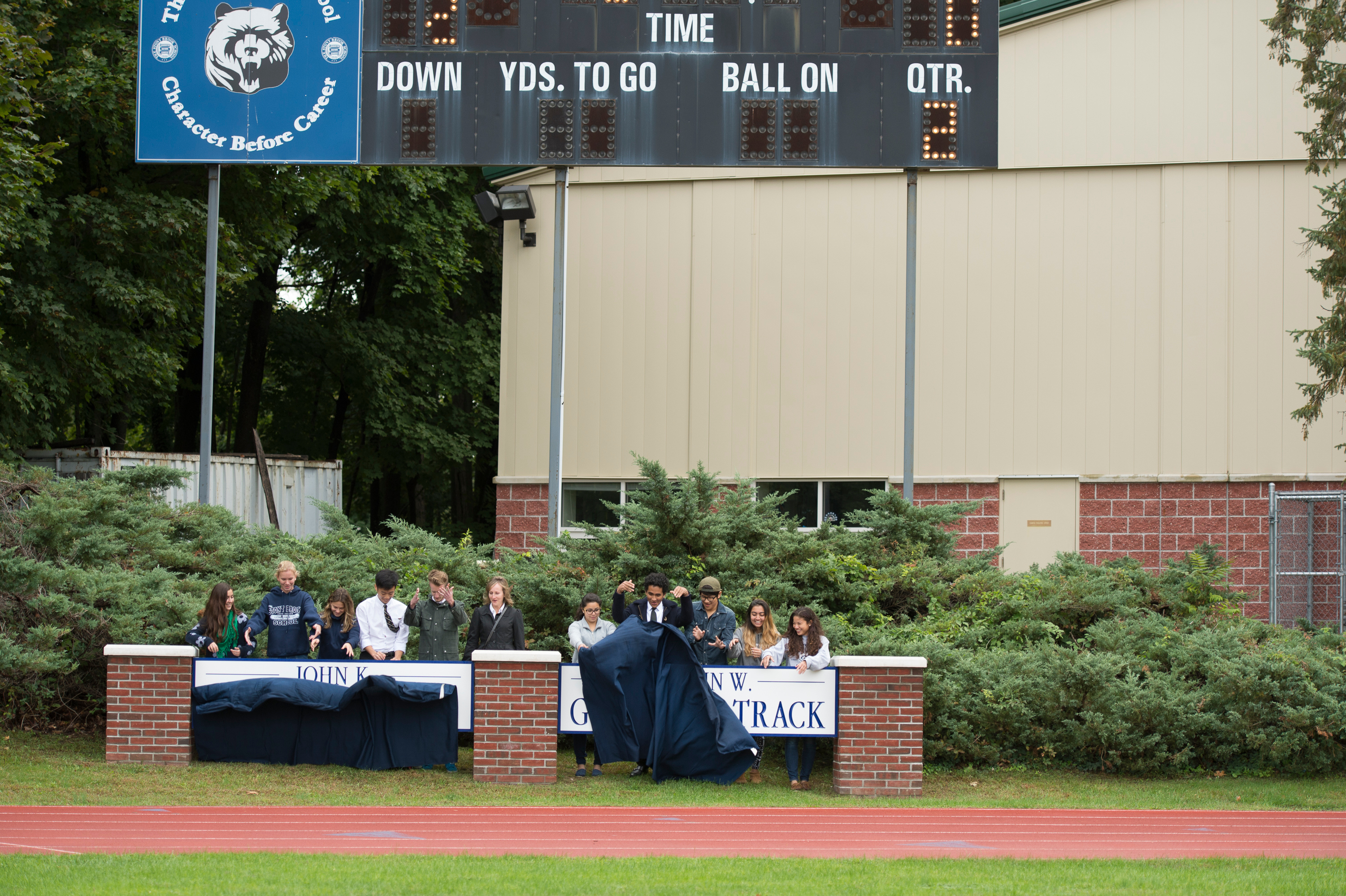On the athletics side, we inducted two new members into our Hall of Fame and unveiled two signs for the Marvin W. Goldberg Track and Fitch Field. Enjoy these images of the weekend, courtesy of Bruce Jeffrey.