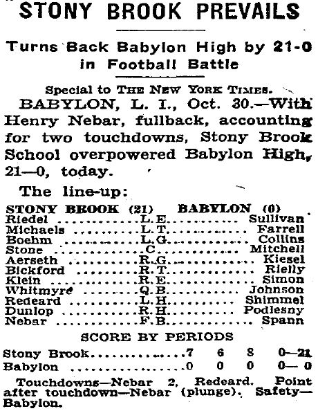 On this day 77 years ago, the football team shut out Babylon, 21-0, behind two touchdowns from Hank Neber. The strong back put the Brook ahead 7-0 early in the first quarter, then scored again to open the second as the Blue and White took a commanding 13-0 lead. By the season’s end, Neber would become the highest scoring back on Long Island in 1937.