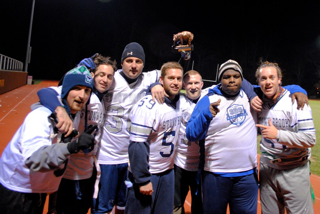 With the win the Shrikes improved to 6-1 in the series. The first night Bear Bowl will almost certainly be the last as the temperature plunged below 30 degrees by the game’s end. Afterwards both squads, decked out in their old Stony Brook jerseys, capped the evening with Se-Port, so did anyone really lose?