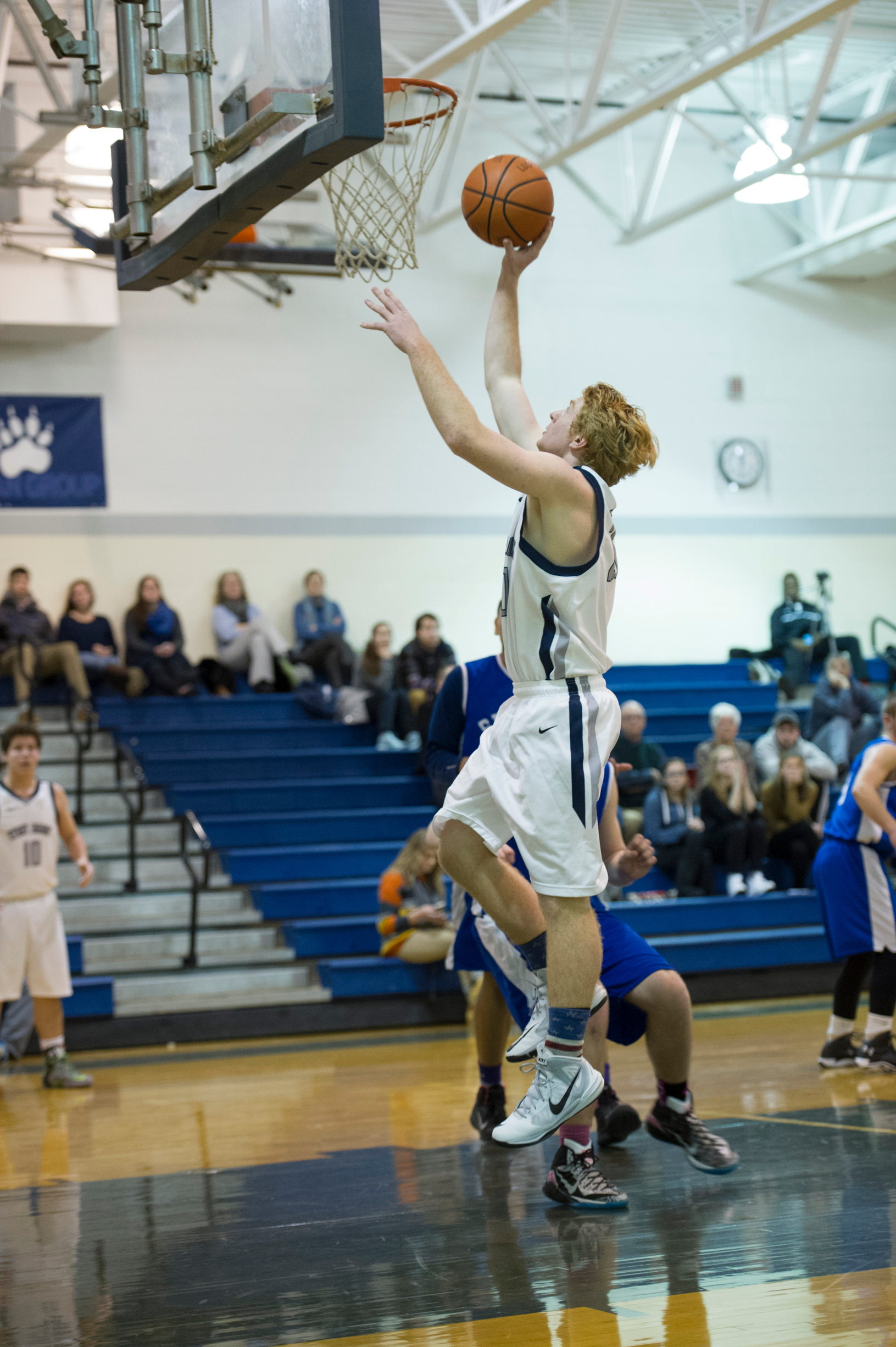 As well as the seniors played in their last game on the Swanson hardwood, the real MVP may have been the Blue Fan Group. The student section packed the stands and fueled a deafening atmosphere that drowned out the Knights’ fans and cheerleaders from the beginning. The students even put together a faux-ESPN table, complete with a homemade banner. John Desan and Jackson Painter donned headsets and interviewed students and faculty as they came in. The atmosphere was simply electric and has the community excited about the fan support that is being cultivated at the Brook.