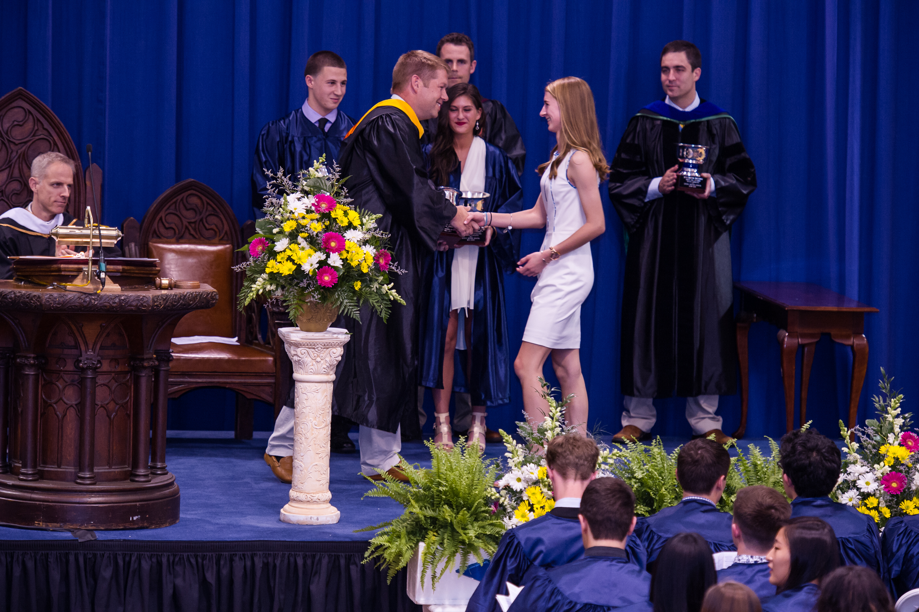 On Friday evening, the accomplishments of the 2014-15 school year were celebrated at the annual Class Night. Alongside awards for academics and student life, athletic awards were given to honor those athletes who worked, competed, and sacrificed this year for the Blue and White.