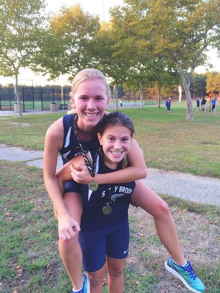 In the Varsity B race, Miranda Harrigan paced the Bears with a 2nd place finish in a time of 20:36. Harrigan was narrowly out-kicked at the line by Shoreham’s Payton Capes-Davis by just 0.20 seconds. Cianka Haynes (6th/23:23) and Danielle Sivertsen (9th/23:57) also earned top ten finishes. On their heels were Nicole Gray (11th/24:06) and Sam Taveras (12th/24:16) to round out Stony Brook’s scoring. The girls defeated Rocky Point by three points but were edged by Shoreham-Wading River by three to claim 2nd place.