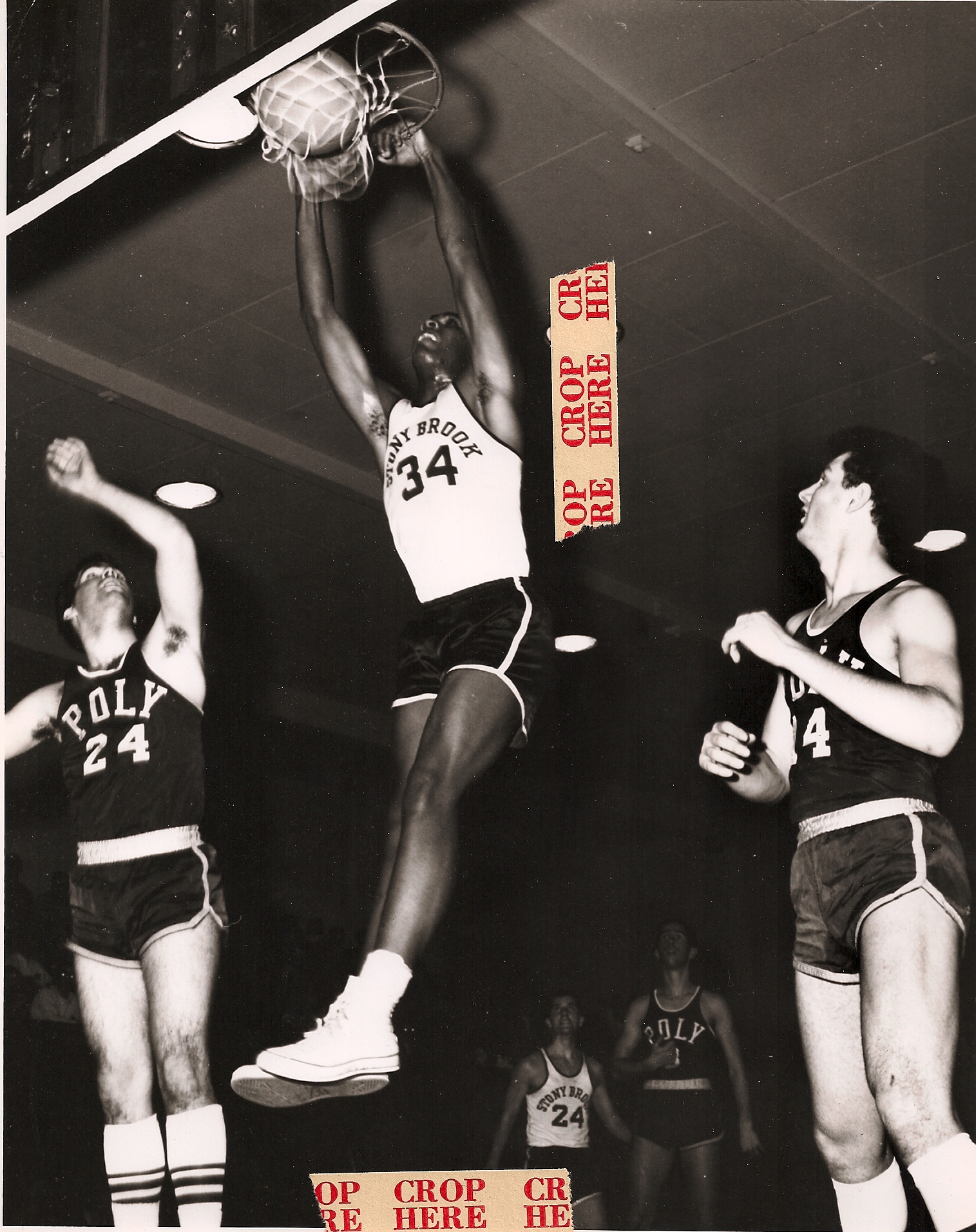 Our final inductee is Jerry Armfield, who arrived at Stony Brook having never played basketball. He remembers long hours spent in Carson Gymnasium working on his skills, particularly his dunks, which he would do 100 times a day. That all came to fruition on one January night in 1966 when he poured in 39 points in a 75-57 win over Poly Prep. The stat of the game? Jerry had 17 dunks. 17! To give you an idea of how imposing a figure Jerry was, Calvin Hill, who would become an All-Pro running back for the Dallas Cowboys, would become physically sick before his Riverdale team had to face Jerry. Calvin told that to Jerry himself several years ago, so it comes from a reliable source.
