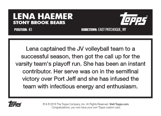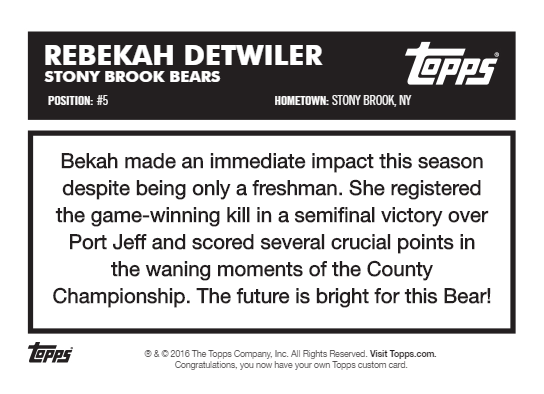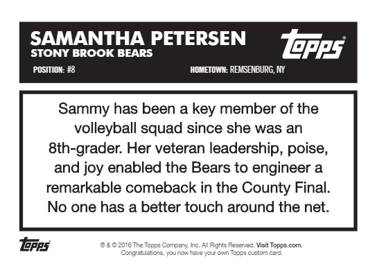 On Monday night, the volleyball team surged from an 0-2 deficit to a 3-2 victory over Pierson in the Suffolk County Championship. The victory is now immortalized in a new trading card set that is a must-have for any collector.