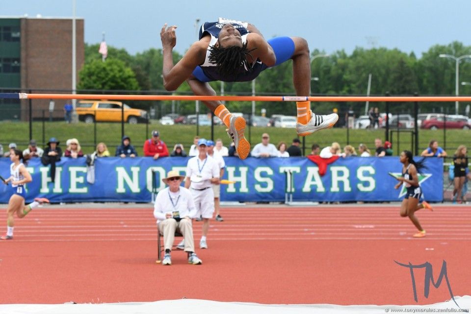 Jyles Etienne became the sixth individual New York State Champion in school history by winning the state high jump crown with a leap of 6′ 10″.