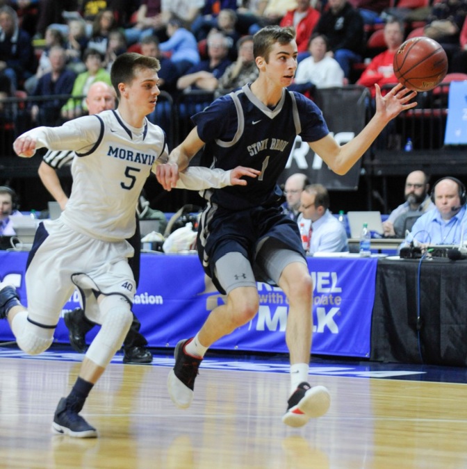 Stony Brook finished 14-11 and made its first trip to the state Final Four. Seniors Jyles Etienne (12 points, 12 rebounds, four blocks) and Mac Bohuny (12 points) also had productive finales.