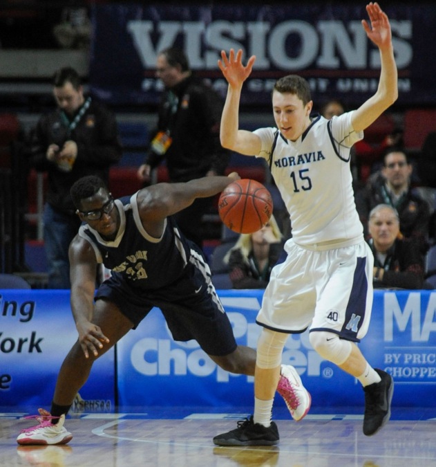 Moravia’s Jordan Cosgrove (14 points) missed two free throws with 10 seconds left, opening the door for the Bears to tie or win it.