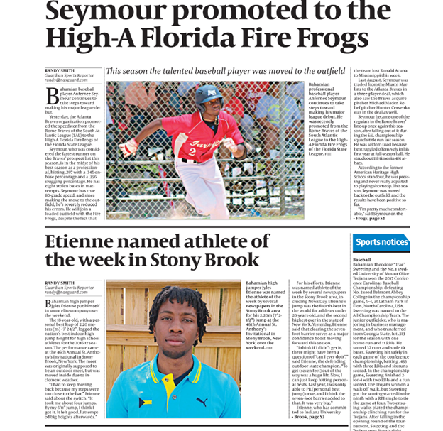 The commotion was heard all the way across the Caribbean as Jyles’ hometown paper, The Nassau Guardian, picked up the story. The Bahamas’ oldest newspaper (it will turn 173 in November) ran stories after Jyles became the United States indoor leader and after he earned the Athlete of the Week distinction, earning the senior front page ink each time.
