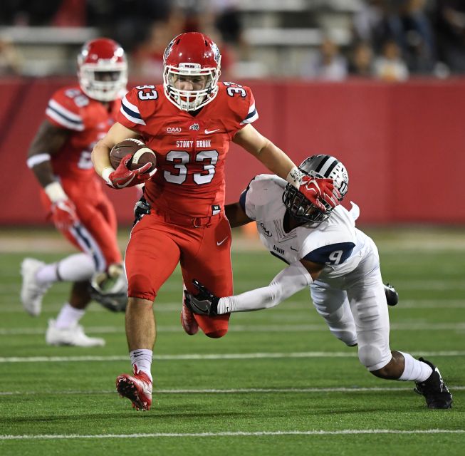 The Seawolves fell behind 16-24 just before halftime, but a defensive shutout in the second half paved the way for the offense to make up ground. With 6:42 left in the third quarter, Liotine punched it into the end zone from one yard out to puntucate a 14-play, 83-yard drive. The Seawolves would miss the two-point conversion, but Liotine’s score brought them within 22-24. Then, with 8:42 remaining in the game, Liotine’s eight-yard scamper pushed the Stony Brook lead to 35-24 after the PAT.