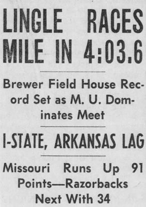 Lingle would go on to win two Big Eight Conference crowns that season in the 1,000 (2:11.7) and the mile (4:10.0).