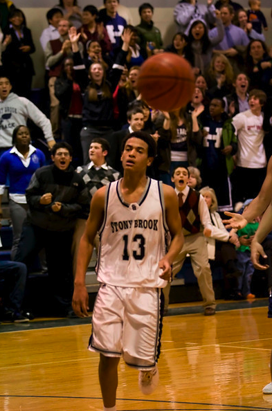 The Stony Brook School Boys' Basketball team defeated Mercy, 57-51, Tuesday night in a Section XI Class C semifinal game held on the campus of The Stony Brook School. Sophomore Tim Pandolfi hit back-to-back three-pointers, the second coming with 27 seconds remaining in the game, to put No. 2 Stony Brook up 55-48 and seal the victory over No. 3 Mercy.Pandolfi finished with 19 points and seven assists. Junior Logan Vimont added 18 points and nine rebounds, as well as being a defensive presence in the middle. Also strong defensively for the Bears were senior captains Franz Lawrence and Aaron Frazier, who were very aggressive in Coach Hickey's man-to-man scheme.The game was very close until the last minute, as Mercy led by one at the end of the first half and again going into the fourth quarter. With the win, Stony Brook improves to 13-5 on the season, including three wins against Mercy, all hard-fought victories.~ Village Times Herald