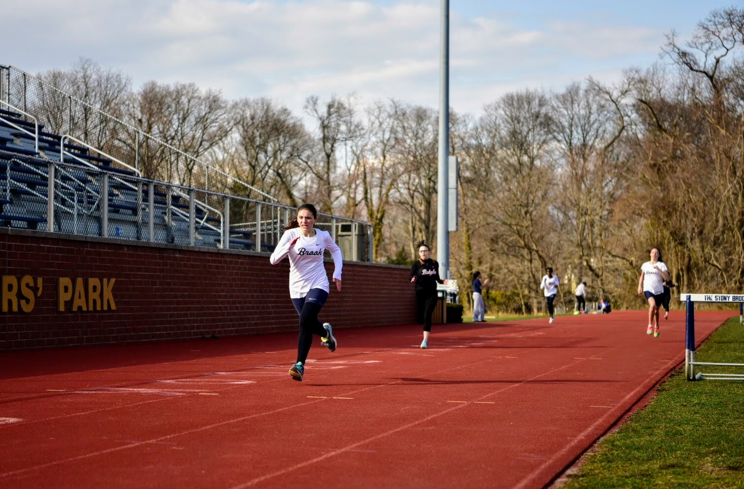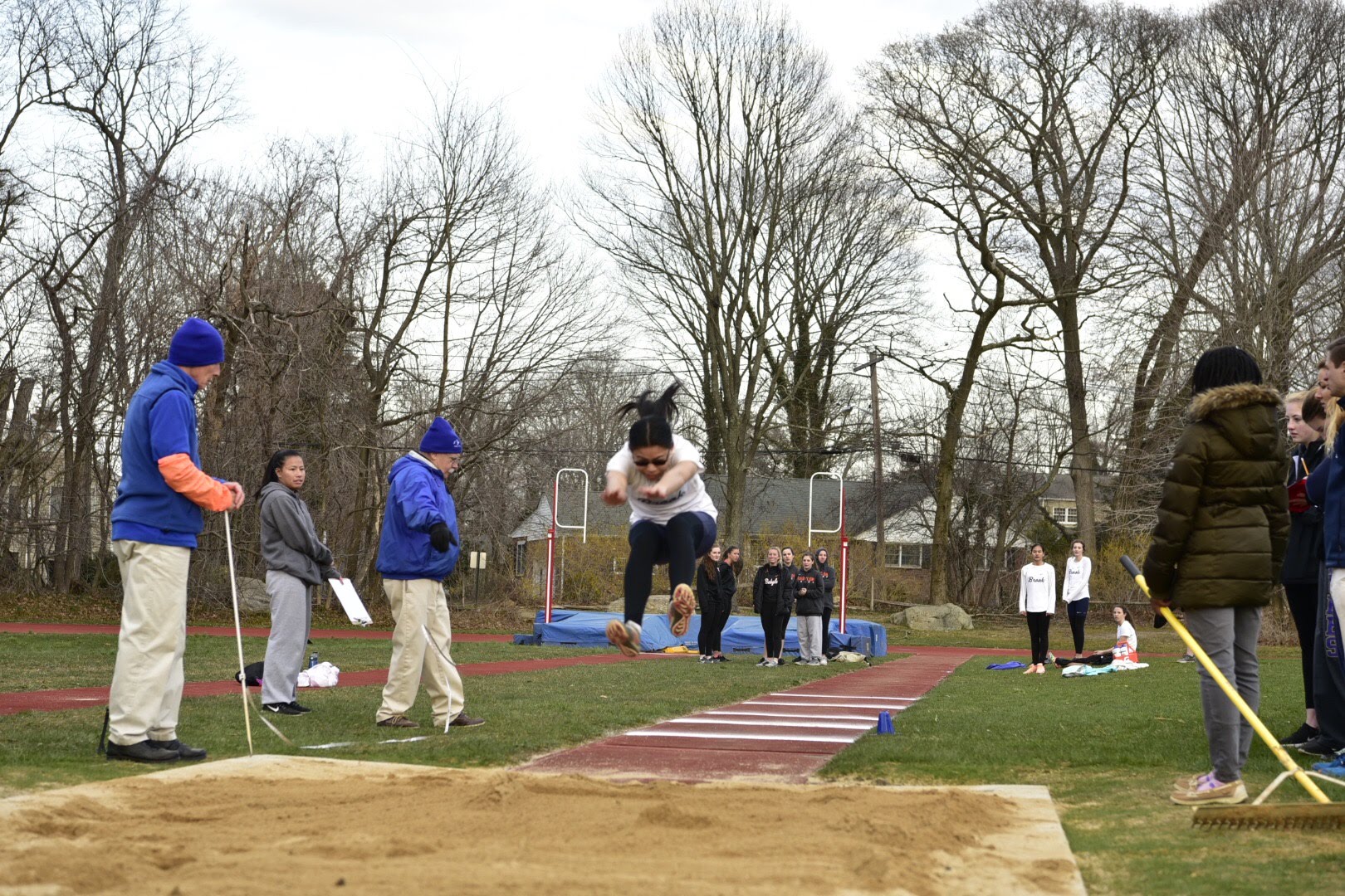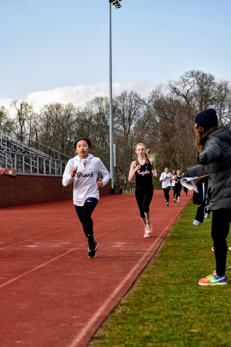 Francine Leung once again led the way for the Brook, racking up 16 points and wins in the long and triple jumps while seventh-grader Niamh Scanlon placed in four events, earning 14 key points for the Bears. Miranda Harrigan won the 3000 and provided one of the highlights of the afternoon in the 1500, taking the lead on the final turn and out-kicking her Babylon opponent to the line.