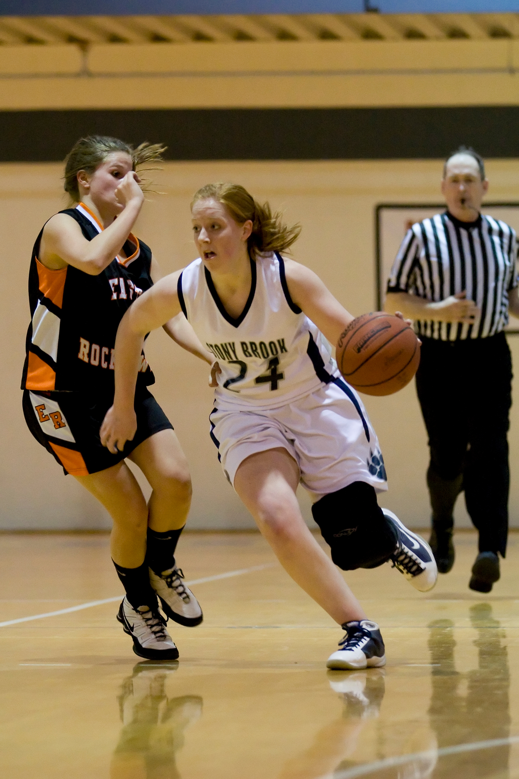 Stony Brook ended the first half on a 12-0 run to go up 26-16. Singer scored the first five points of the run, Burke the next five, and Candace Baker beat the buzzer with a layup. Stony Brook held East Rock to two points in the second quarter.