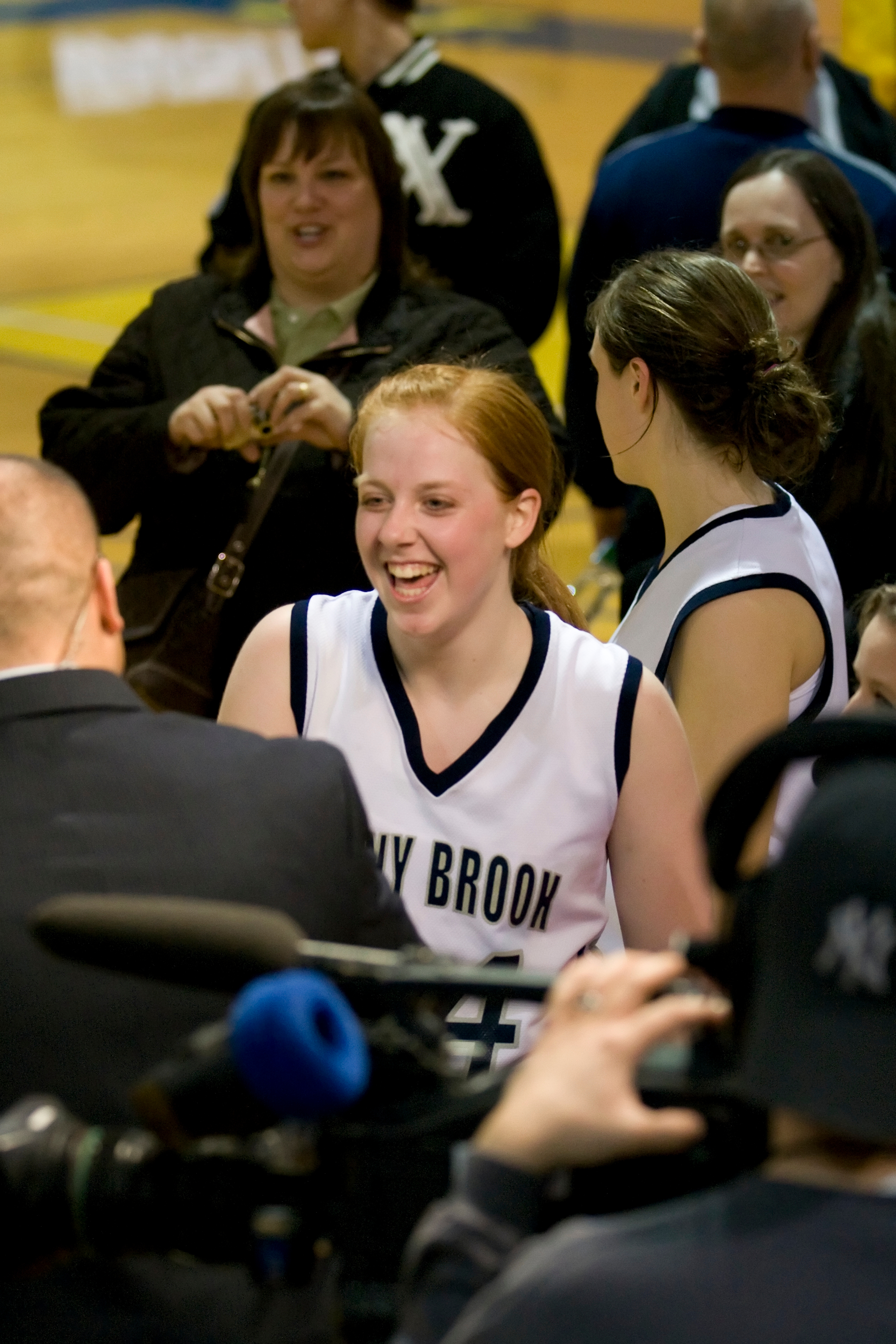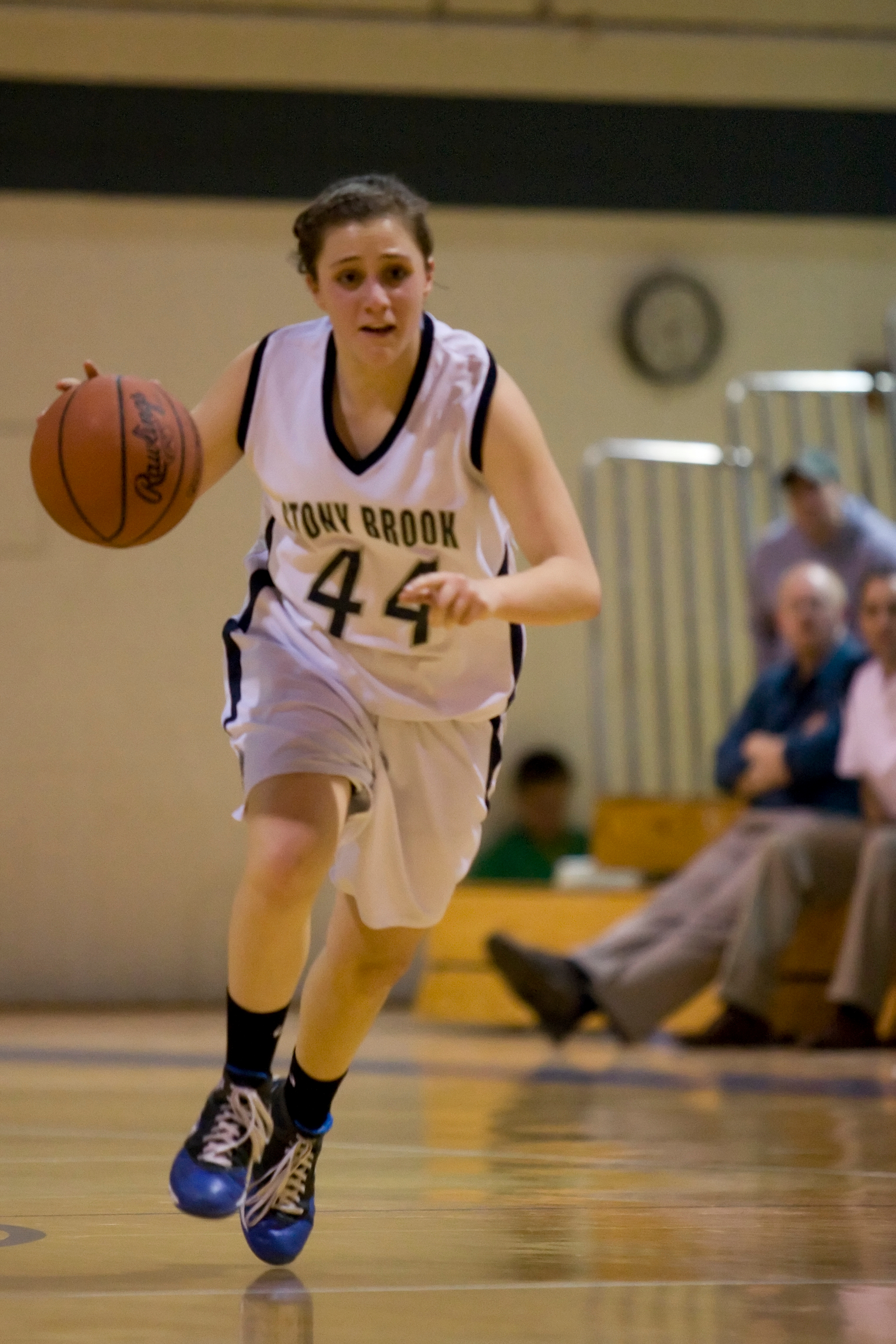 Back at St. Joseph’s last night, one long rehab later, there was nothing but joy on Singer’s face. Behind 19 points from Brannon Burke, stellar point-guard play by Singer, and the support of a raucous cheering section, Stony Brook defeated East Rockaway, 49-36, in the Long Island Class C Championship/Southeast Regional girls’ basketball semifinal.