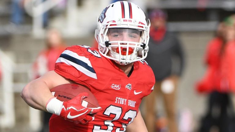 Donald Liotine ’13 is currently ranked by BNB Football as the 71st running back out of 167 in this draft class. That puts the Stony Brook University star ahead of backs from such schools as Oregon, Virginia Tech, and Alabama. Though the FCS did not hold its own combine, Hero Sports aggregated the results of FCS runningbacks who performed at various combines and pro days. Liotine faired well in a number of metrics: