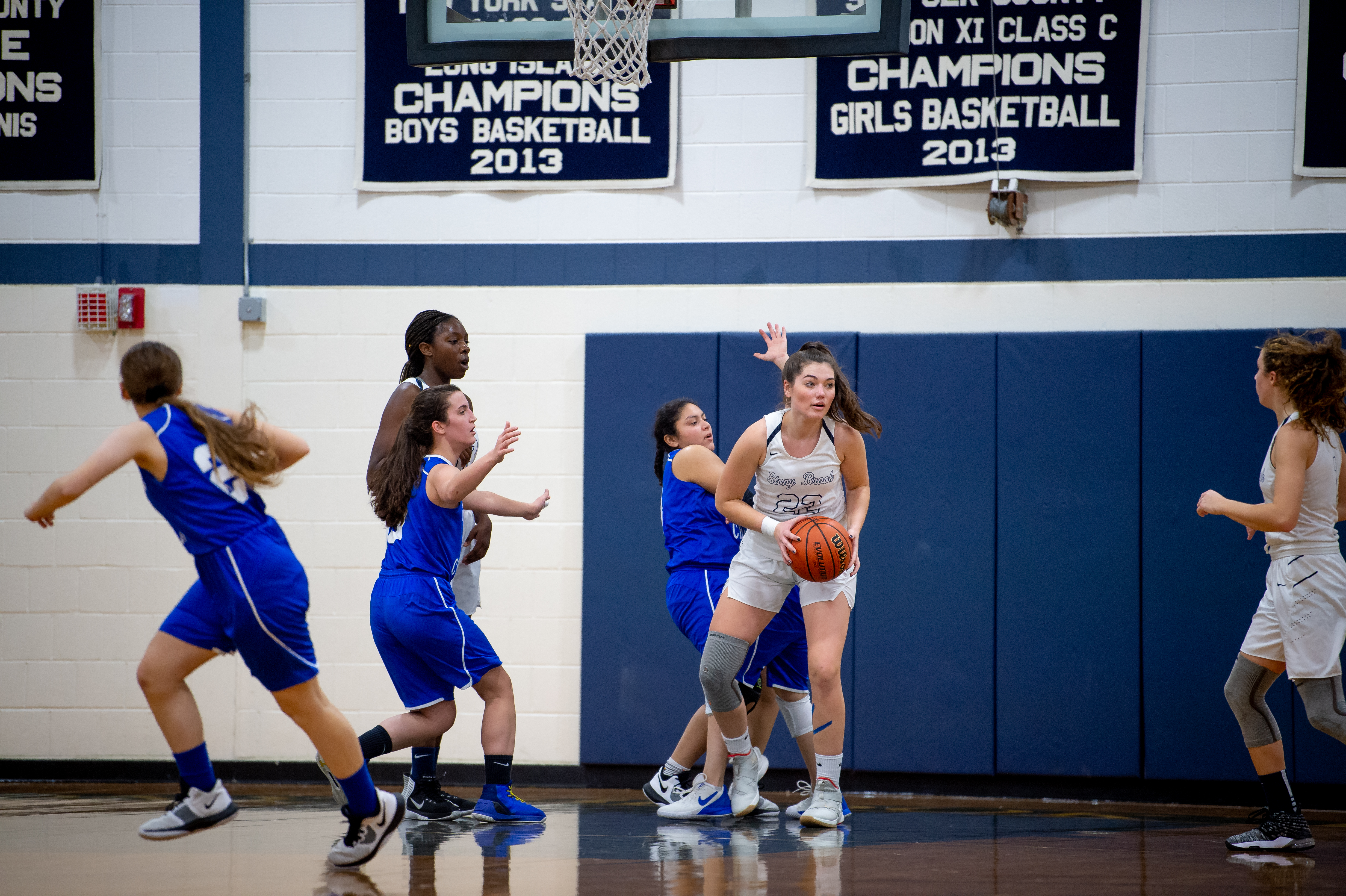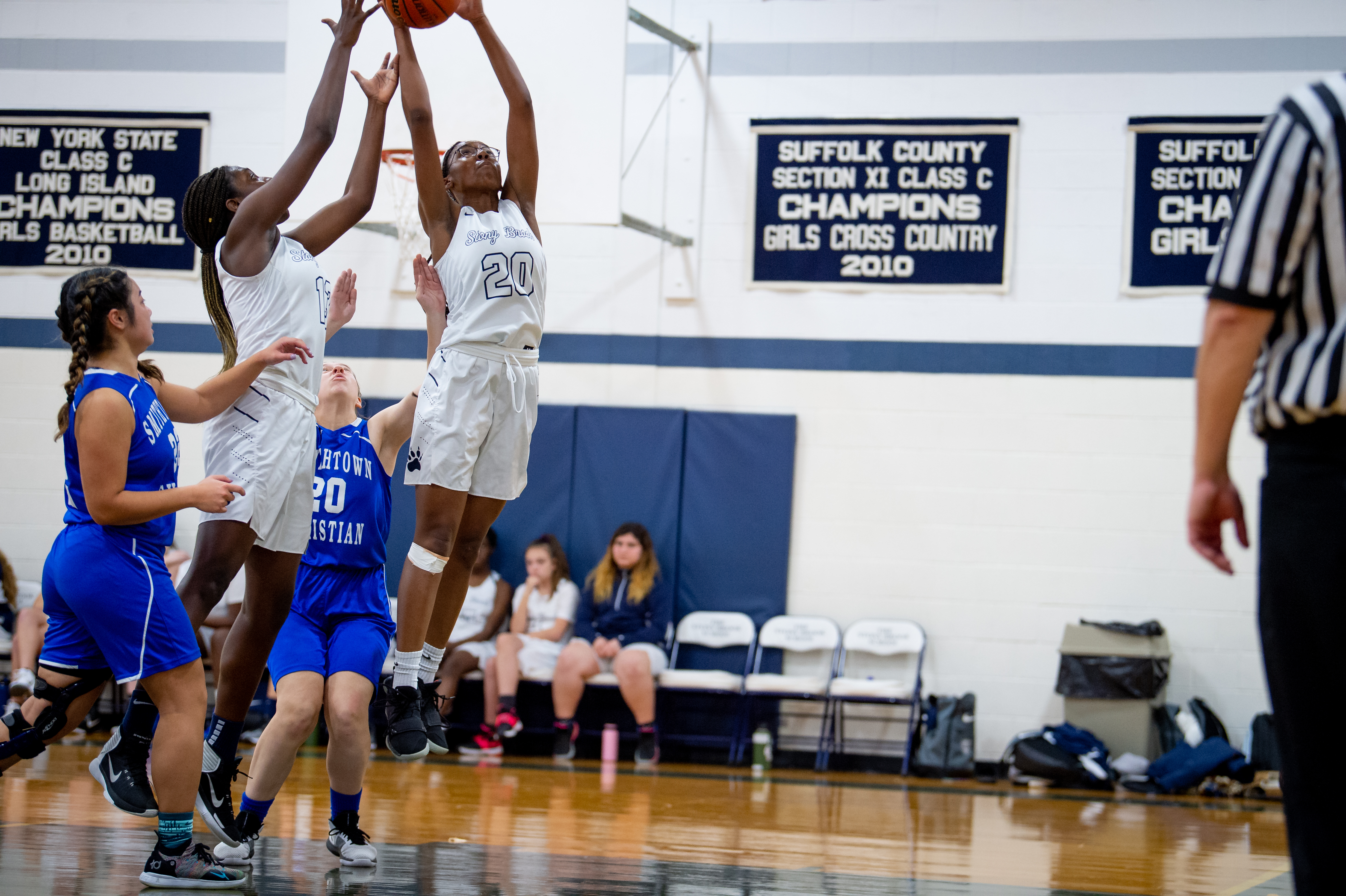 Smithtown carved into their deficit with a layup to begin the third quarter, but a pair of putbacks from Nadia Hall and Obasanjo and another layup from Detwiler gave the Brook their biggest lead of the day, 34-21, at the four-minute mark. Obasanjo and Hall then sandwiched a pair of blocks around two Scanlon free throws as the Blue & White imposed their will. A Smithtown jumper briefly stemmed the tide before another Detwiler layup extended the lead to 39-23. Detwiler then ended the quarter with a big block as the Bears carried a 39-25 edge into the final frame.
