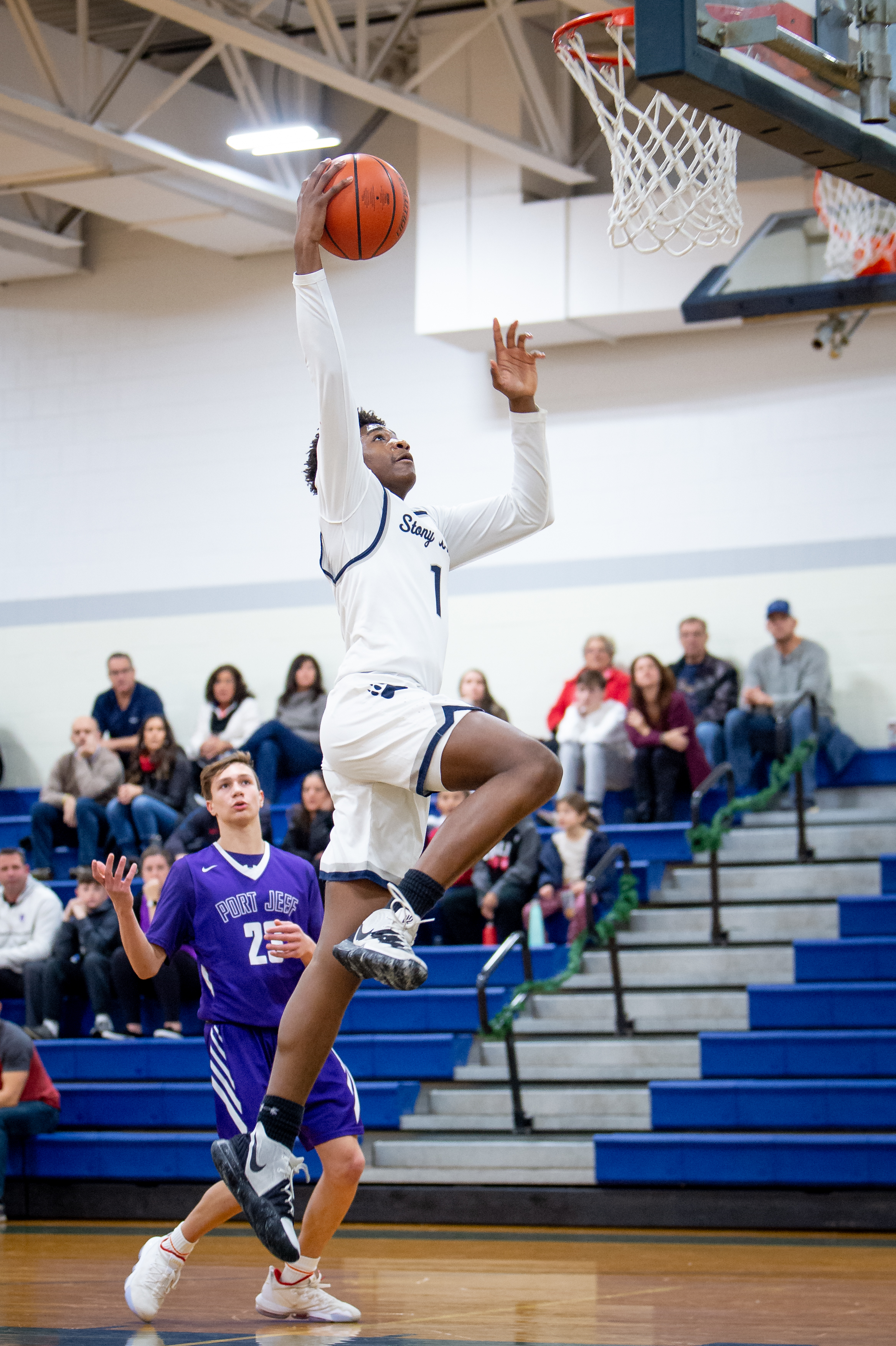 An Edwards layup and a Wachter putback pushed the lead back to 59-50 before Edwards converted a difficult and-1 to extend the edge to 62-51. A Scanlon steal and layup again appeared to spell the end for the Royals as the Brook took a 65-51 lead with just 2:15 remaining, but five straight free throws and a 3-pointer, sandwiched around a Fajfer layup, pulled Port Jeff within 67-59. The Royals finally succumbed thanks to a Brandon Gicquel steal and score and five free throws from Scanlon.