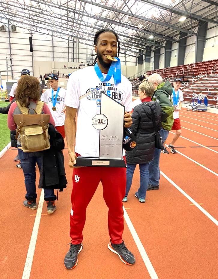 Both jumpers passed at 7′ 5″ and moved on to 7′ 5.25″ where they each bowed out after three attempts. Etienne had one fewer jump at the previous cleared height, giving him the crown, one year after earning the bronze. His ten individual points were crucial for Indiana as they edged Iowa for the men’s Big Ten title 120.5-107. It is the 19th indoor title in Hoosier men’s track history and their first since 2017.