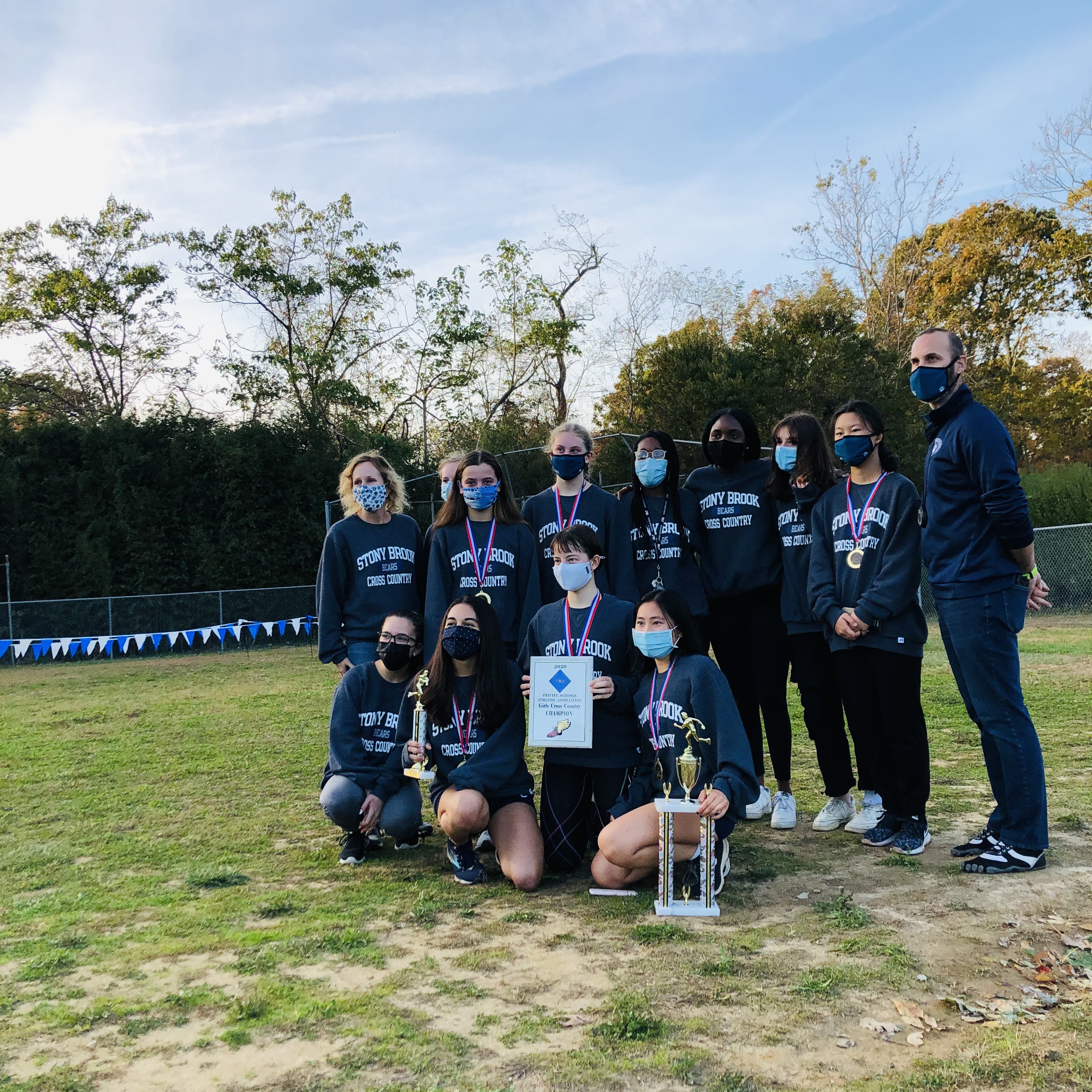 The girls were dominant in their race as well as Sarah Wong and Evelyn Apazidis claimed the top two spots. Five Bears flooded the top ten places and all seven Stony Brook runners earned All-PSAA status. Despite being the only team that had the minimum five runners for a qualifying team score, the Bears placed all seven runners ahead of Portledge’s fourth runner, eliminating any debate as to whether the Panthers could have challenged the incumbent champs with an additional competitor.