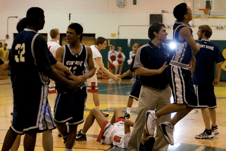 Stony Brook players rejoiced while Southold ‘s Gino De Jongh laid motionless on the court, the picture of dejection.