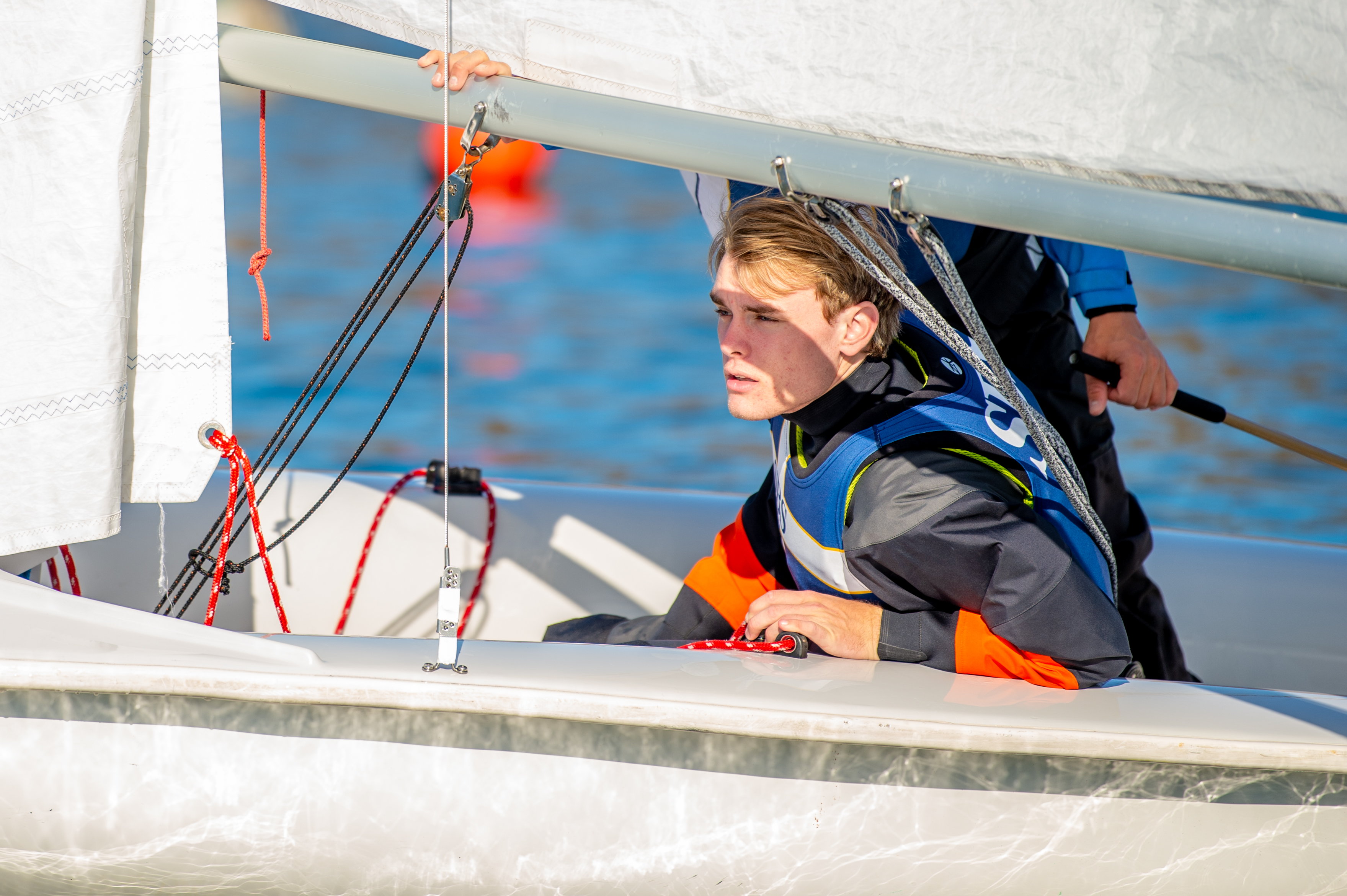 The Bears 4 boat was the top finisher overall as Isabella Seminario and Gavin Hudson earned three 1st place finishes and a trio of 3rd places for a total of 12 points. The Bears 2 boat of Steven Hardee and Sean Beaver were right on their hull in 2nd place with 13 points. Jeremy Lunati and Sebastian Hell guided the Bears 1 boat to a 4th place finish (29 points), while Mairead Reitzel and Amy Li sailed Bears 5 to 8th place and Robert Sun, Sam Huang, and JP Bennett took Bears 3 to 9th place, each in 51 points and separated only by a high-finish tiebreaker.