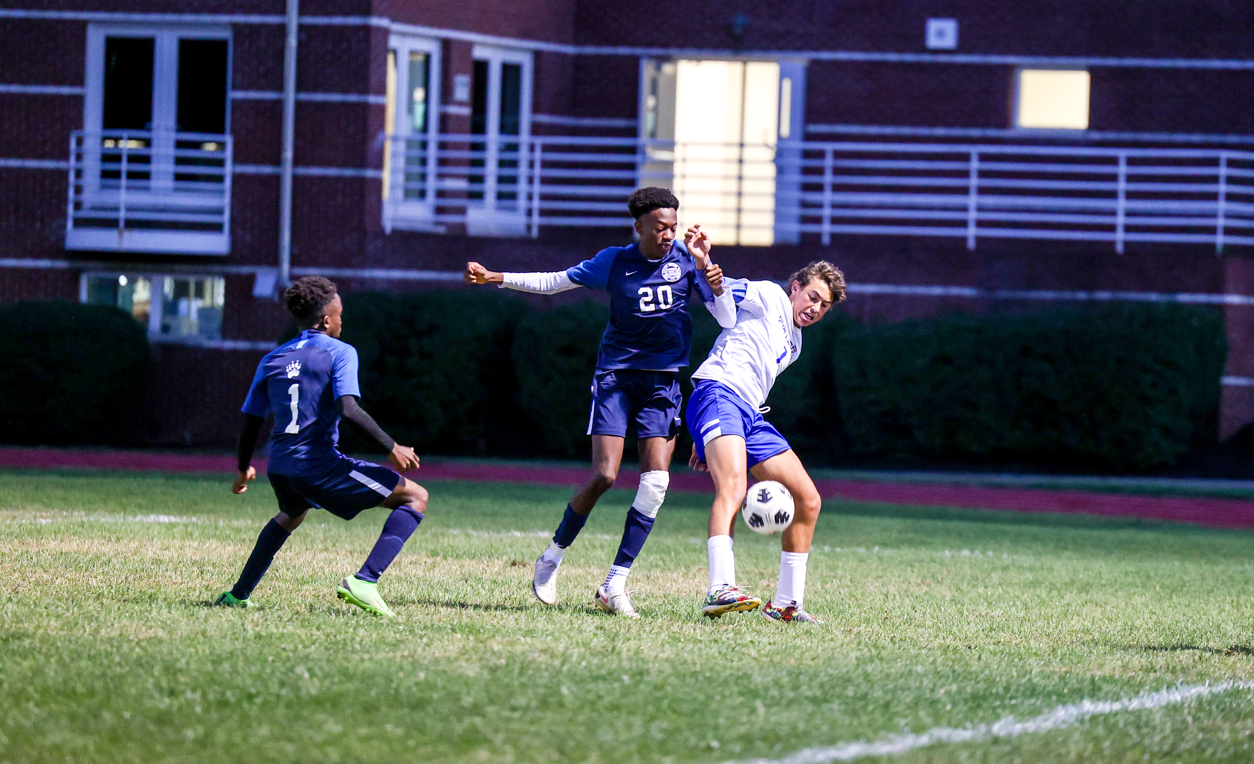 On Friday night, the boys’ soccer team put a brilliant finish on the inaugural Fall Portledge Day with a 4-1 win under the Buyers’ Park lights that moved the Bears to 4-0 in PSAA play. The victory also gave The Brook a 4-2 edge in the day’s six rivalry contests, along with wins by the girls’ cross country, tennis, and volleyball teams.
