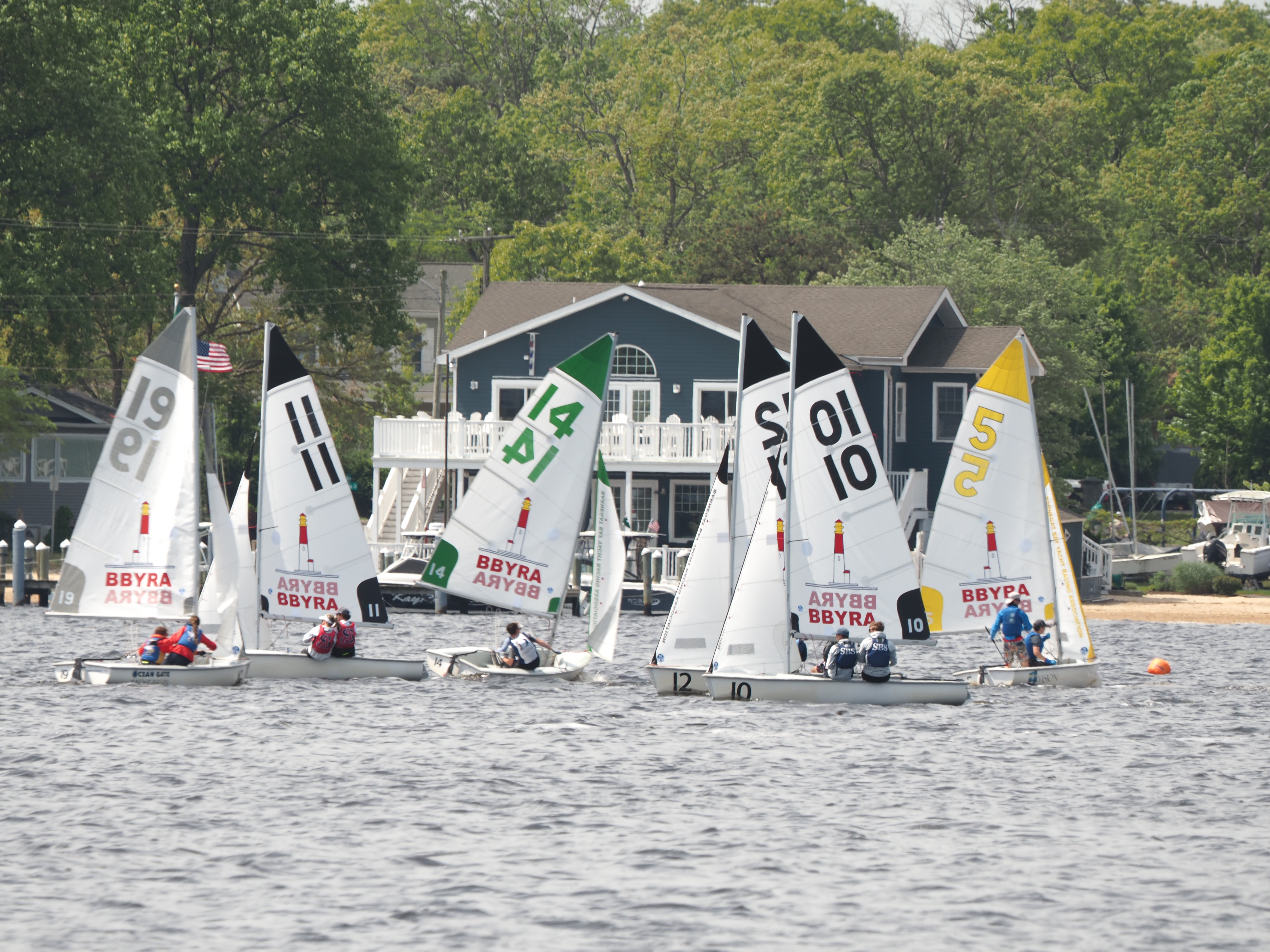 An overnight front passed through, leaving a northeast breeze and cooler temperatures in its wake. By noon on Sunday, a southeast breeze kicked up to 8-12 knots and four Division A races and six Division B races went off before the regatta was completed. Severn (MD), Norfolk Academy (VA), and Archbishop Spalding (MD) outdistanced the rest of the field for the top three spots, leaving the coveted fourth spot and Nationals berth up for grabs among five teams that were within 10 points of each other throughout the day. As the final races approached, the Bears and Southern Regional HS (NJ) were left jockeying closely for the final qualifying position.