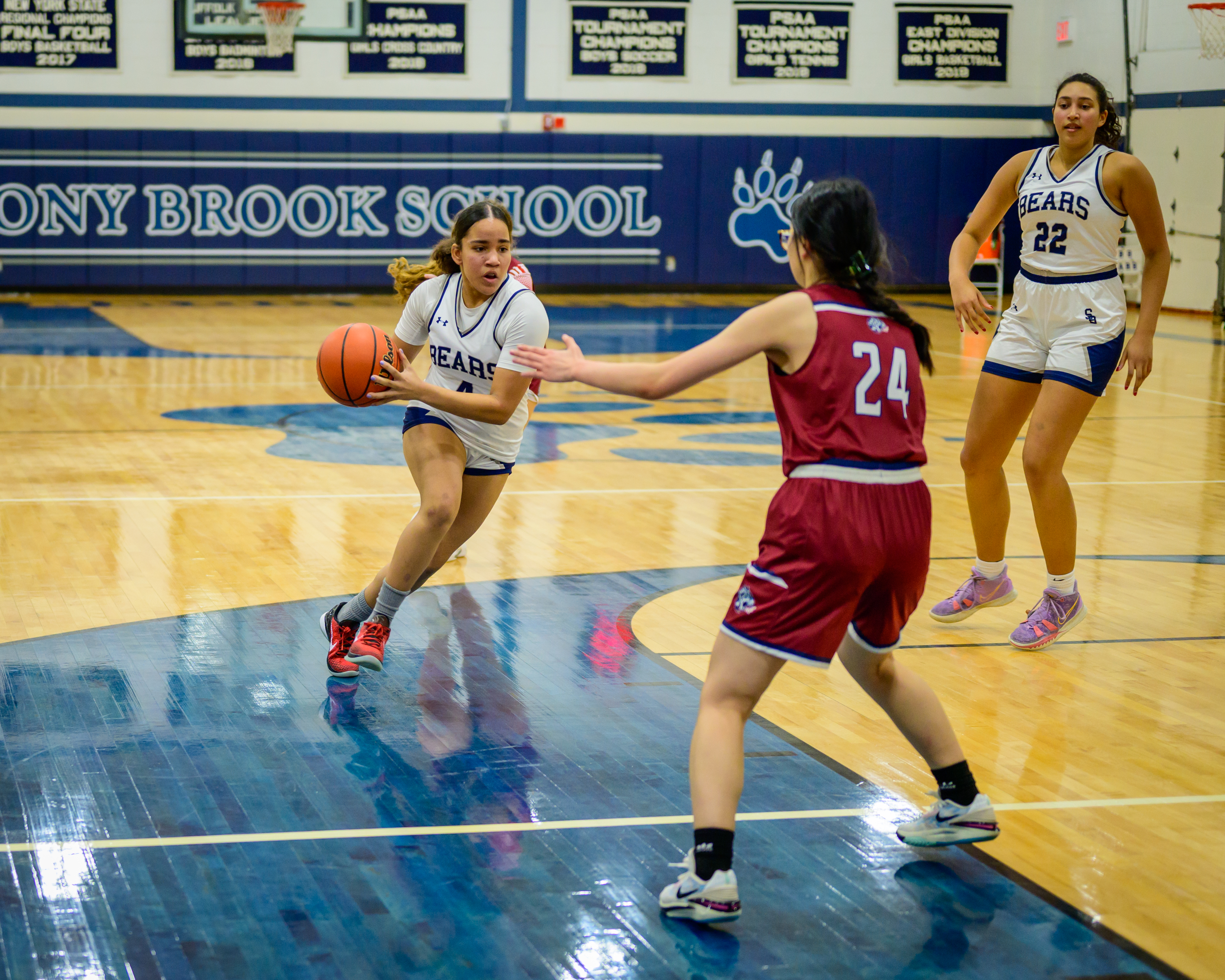 Just a few weeks removed from their last match-up, the girls’ basketball team once again handed Solomon Schechter a lopsided loss on Monday evening at Island Garden. The 61-26 win upped their Bears’ record to 6-0, including a 4-0 start in PSAA play. They have an average margin of victory of 48.5 points.