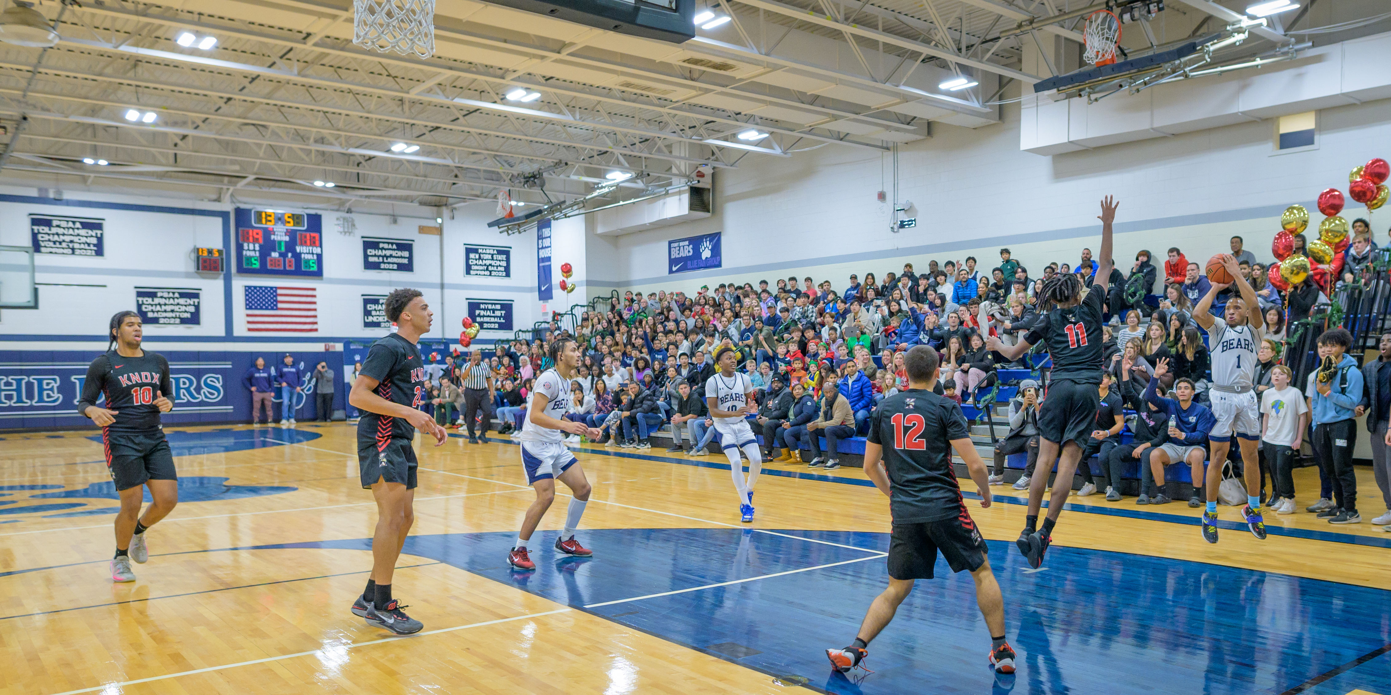 On Friday night, the boys’ basketball team delighted a packed Swanson Gymnasium with an electric 64-61 victory over Knox on the 7th Annual Silent Night, an annual tradition where our Christmas-clad crowd remains completely silent until the Bears’ 10th point.