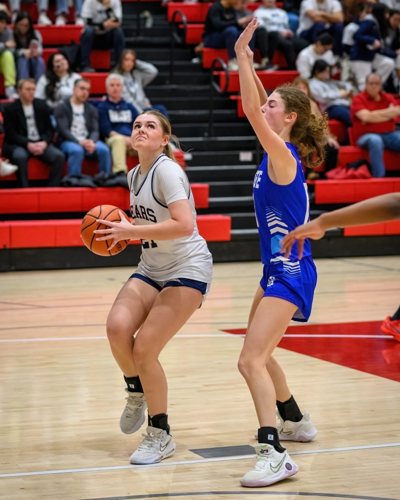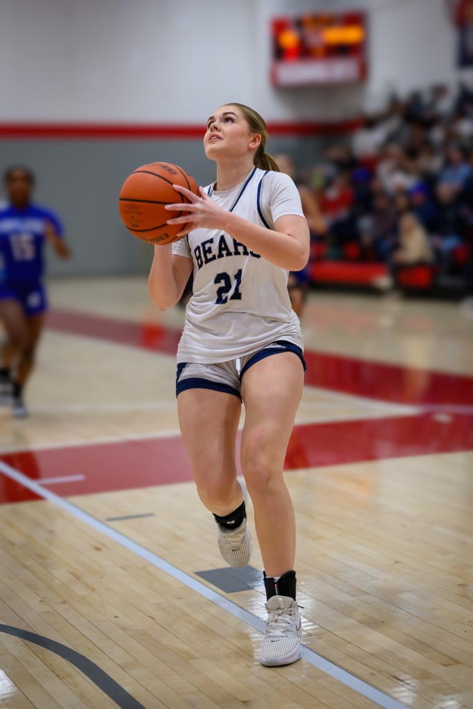 It could have been the crowd, the pressure, or the familiarity, but whatever the reason, both teams looked shaky in the first quarter. Cassandra Rohan scored the game’s first points 2:16 in with a putback. She doubled the lead on another putback before Portledge banked in a 3-pointer. Jocelyn McCrain answered with a trifecta of her own to push the lead to 7-3, but a pair of Panther layups evened the score at 7-7. The Bears missed numerous layups in the period, but still grabbed a narrow 9-7 lead after one when Rohan hit a short jumper with 3 seconds on the clock.